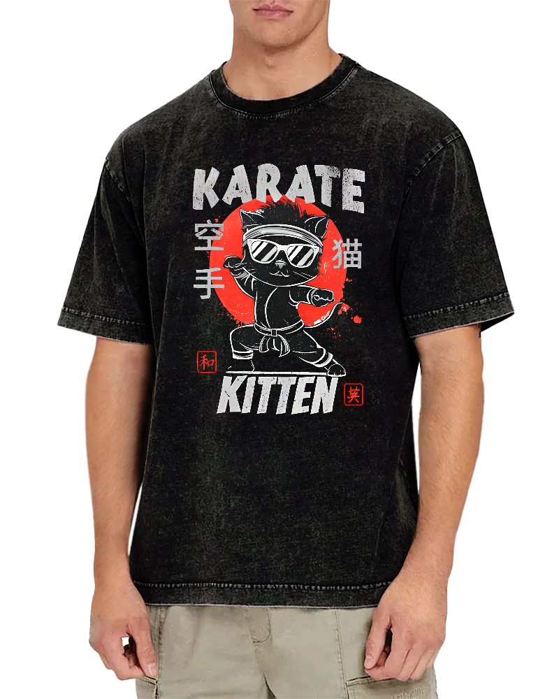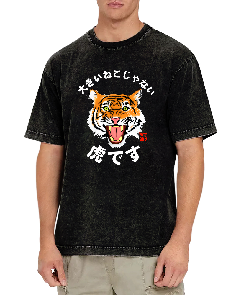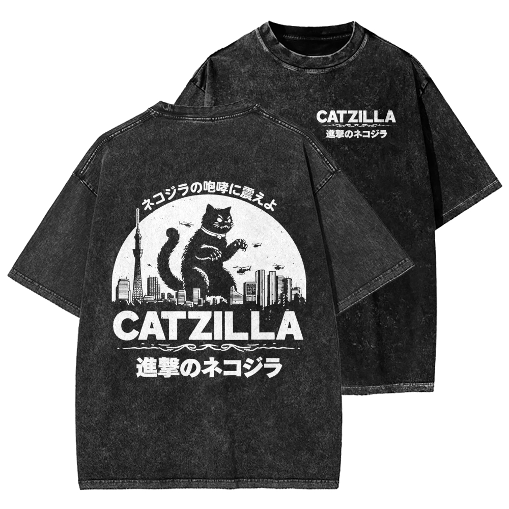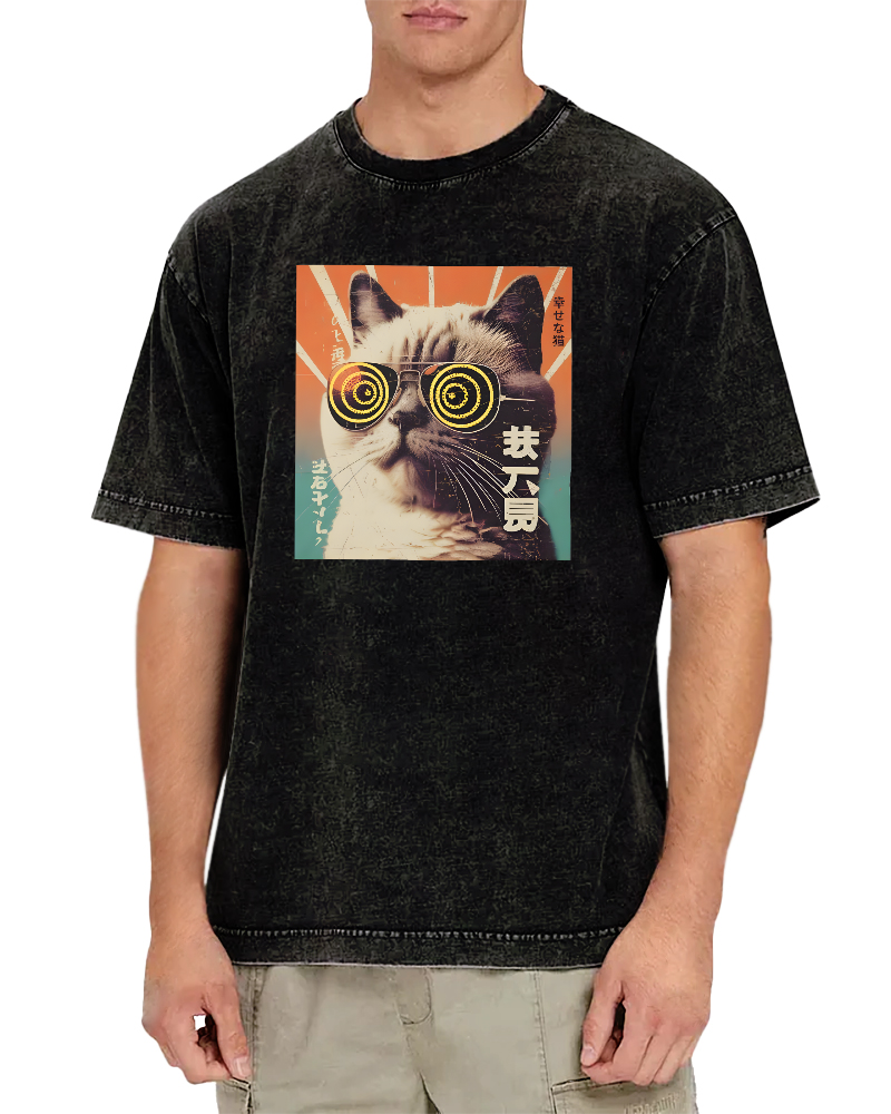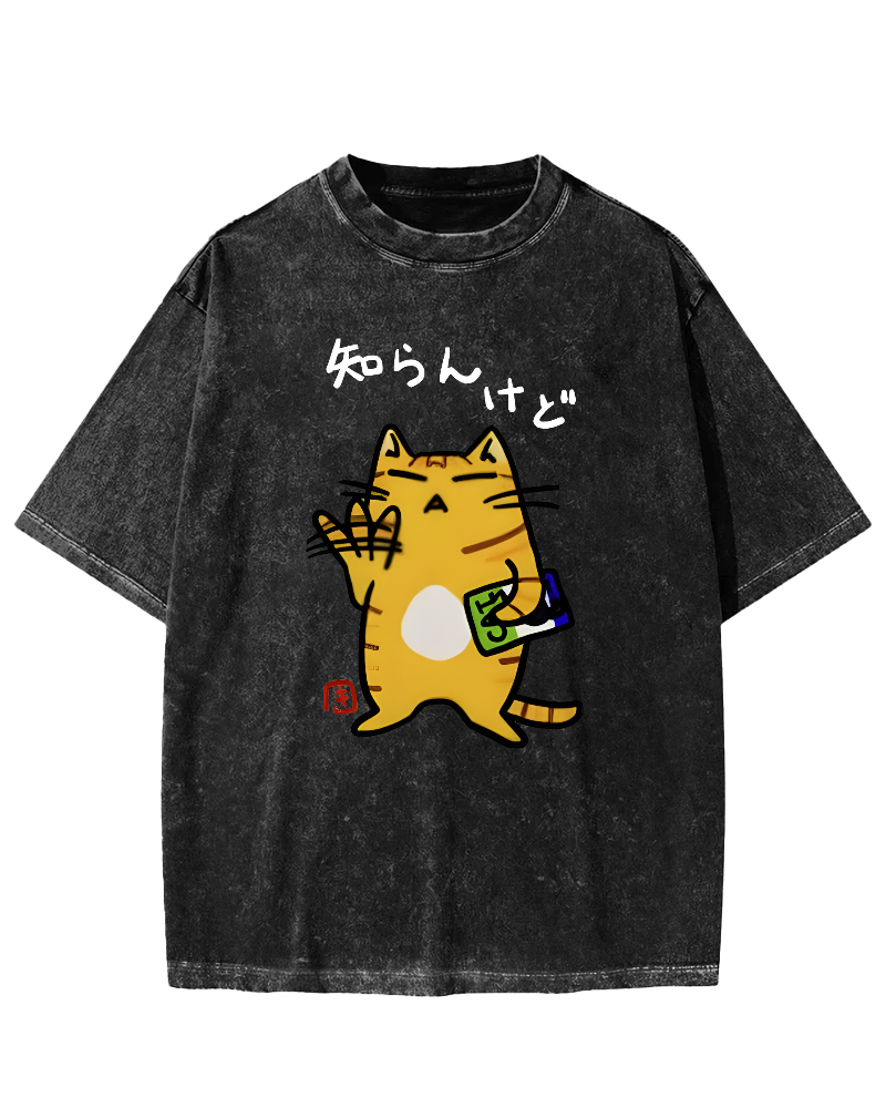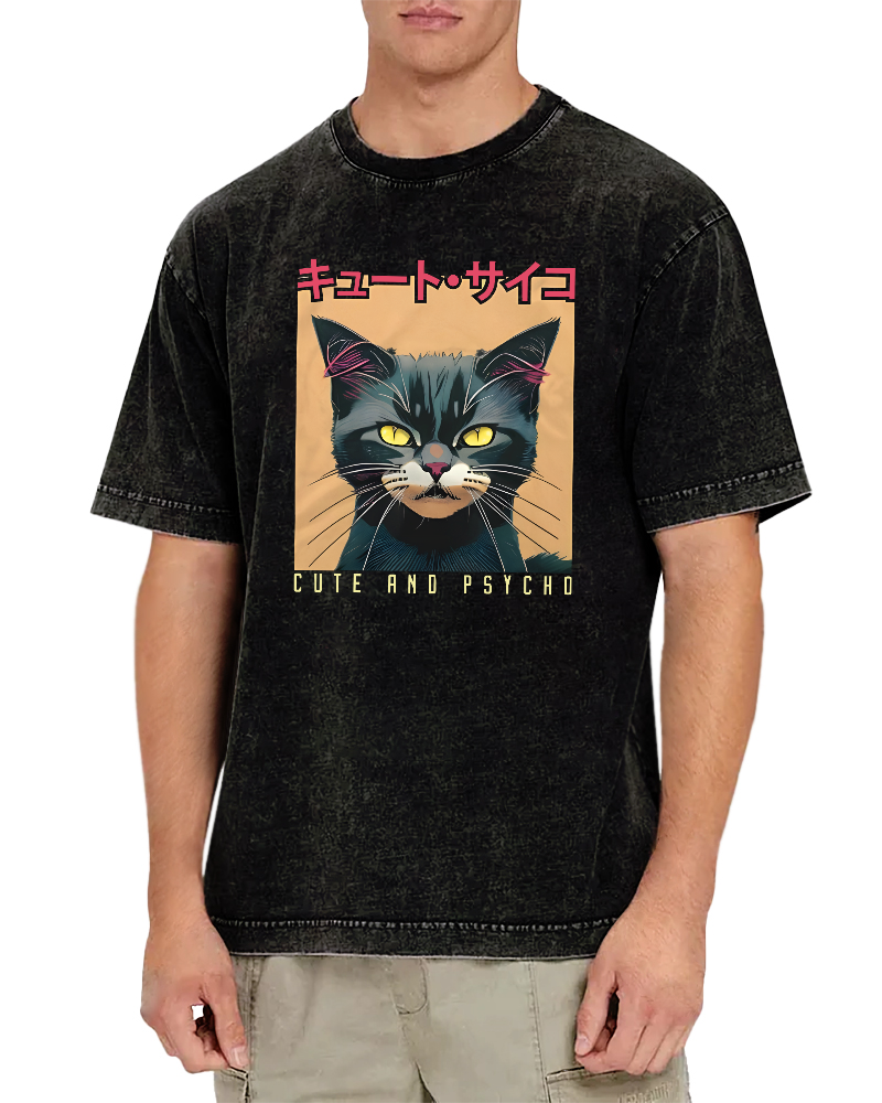 Cat Temper Japanese Style Vintage Washed T-shirt