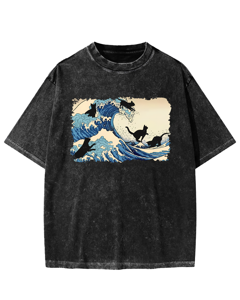 Cats in Japan's Giant Waves Vintage Washed T-shirt