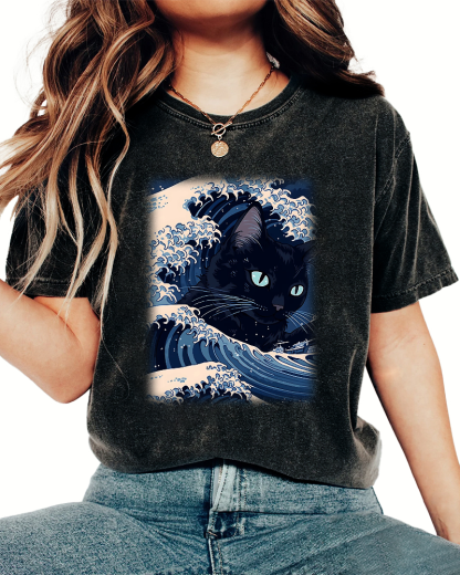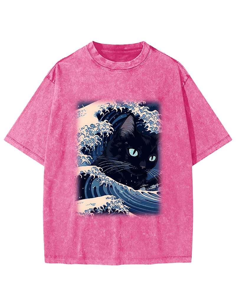 Japanese Cat in the Waves Vintage Washed T-shirt
