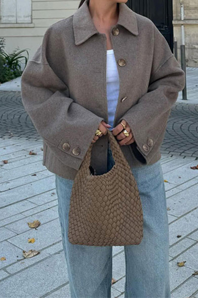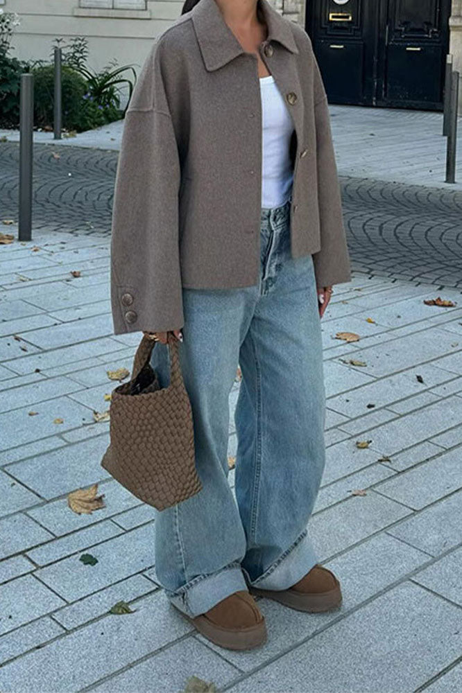 Lapel Solid Color Cardigan