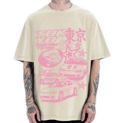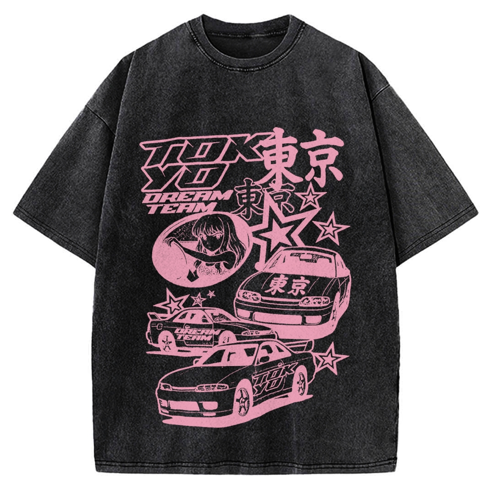 Pink Car Star Collage Tokyo Dream Team Vintage Washed T-shirt
