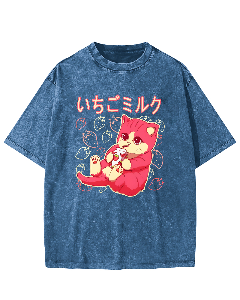 Strawberry Cat Vintage Washed T-shirt