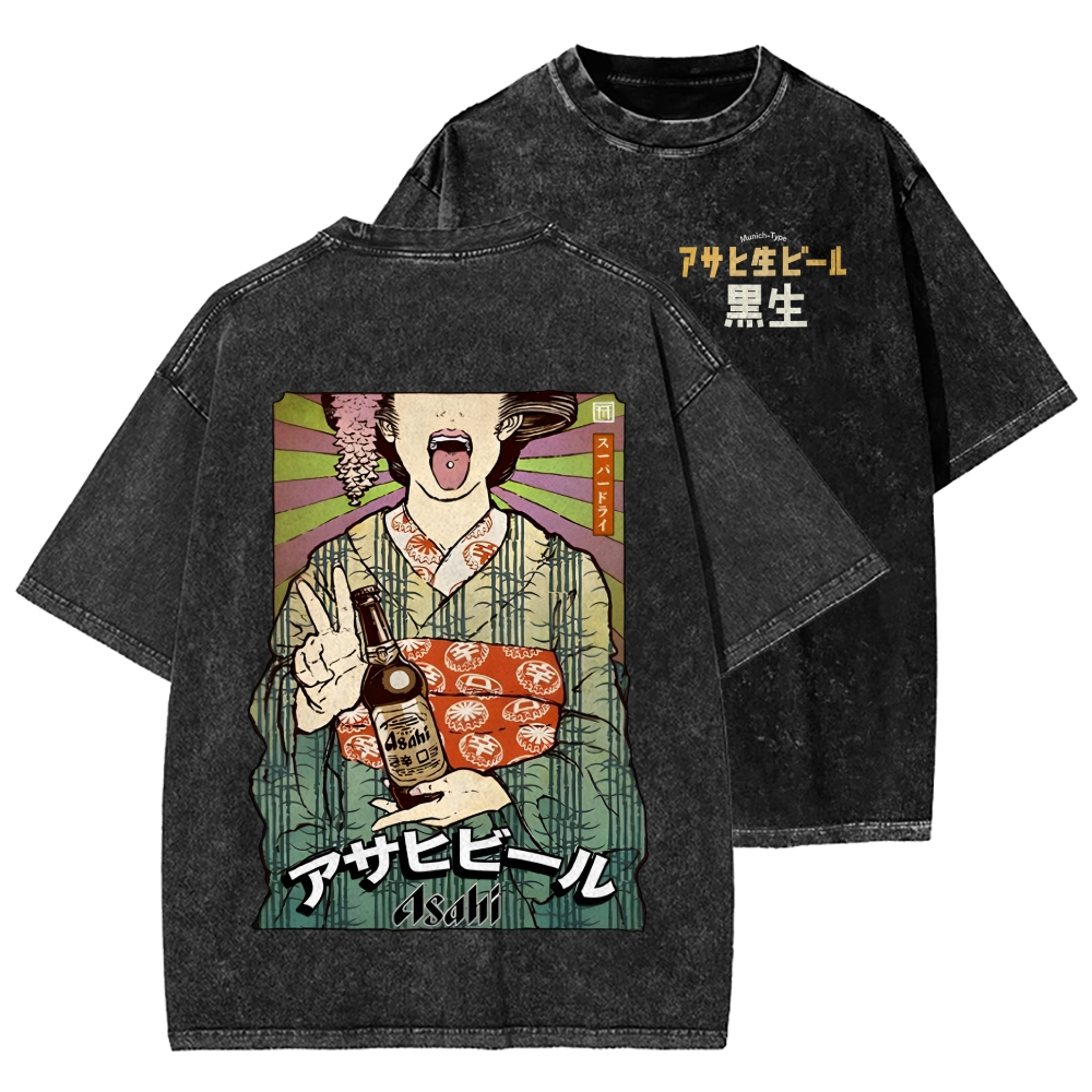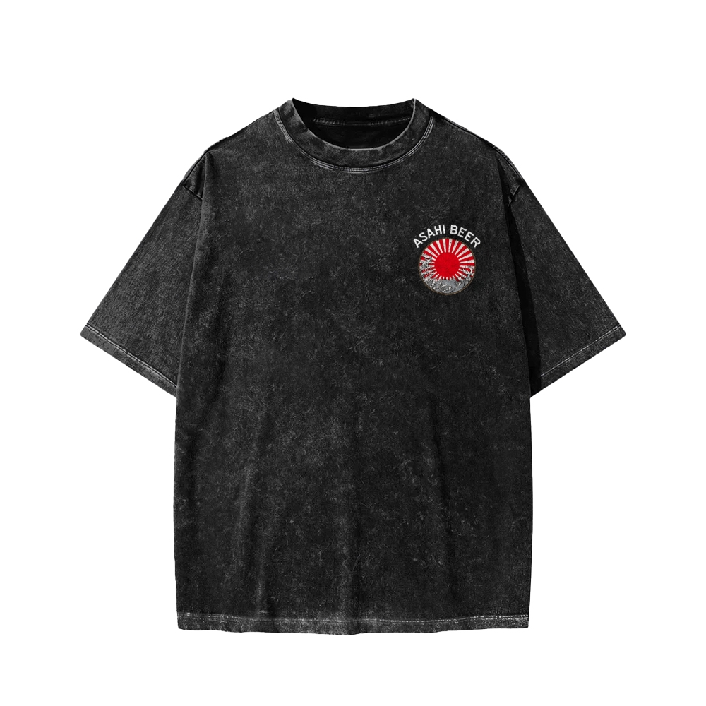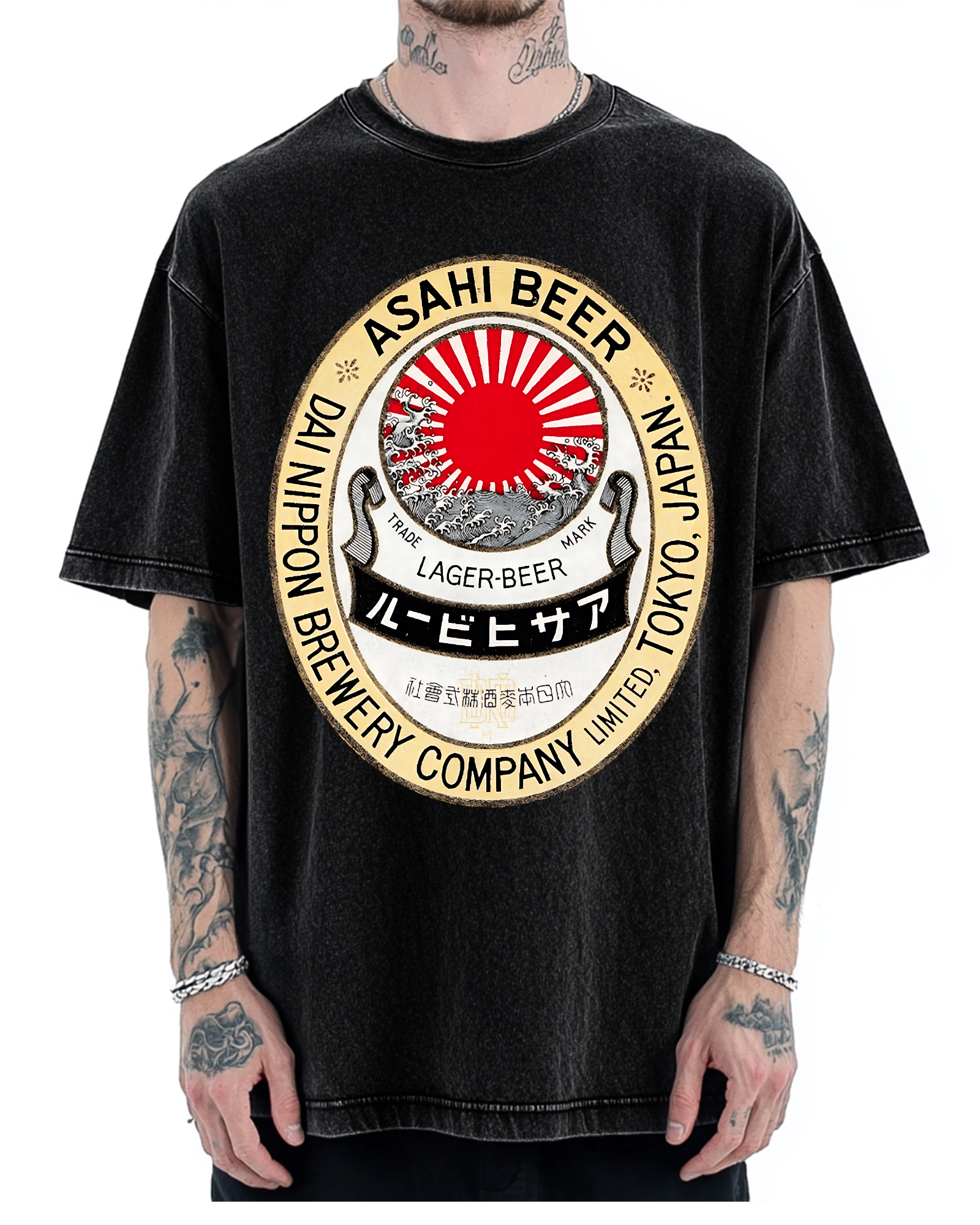 Asahi Breweries Beer Front And Back Printing Washed T-shirt