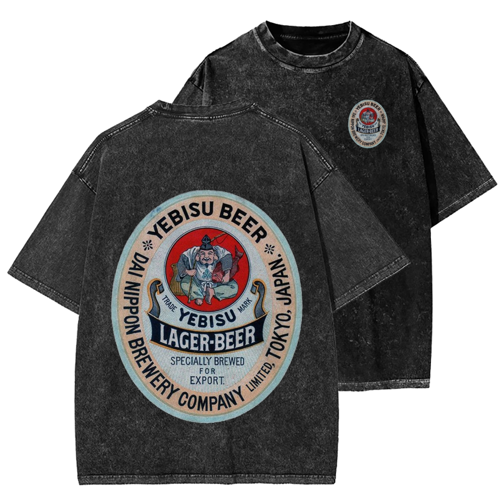 Yebisu Beer Front And Back Printing Washed T-shirt