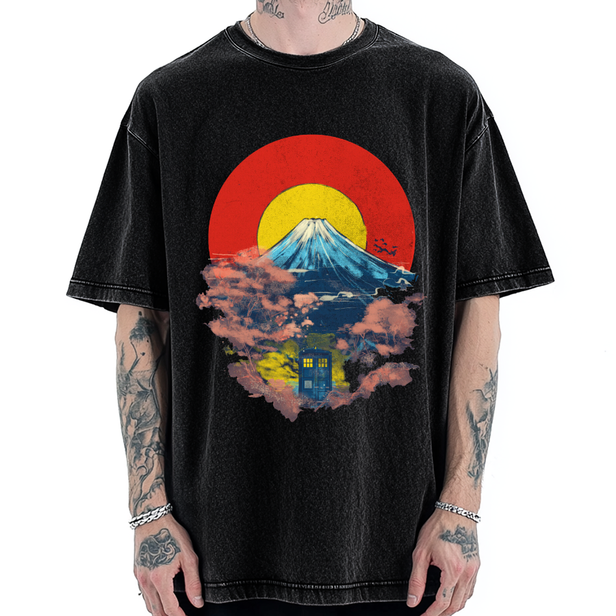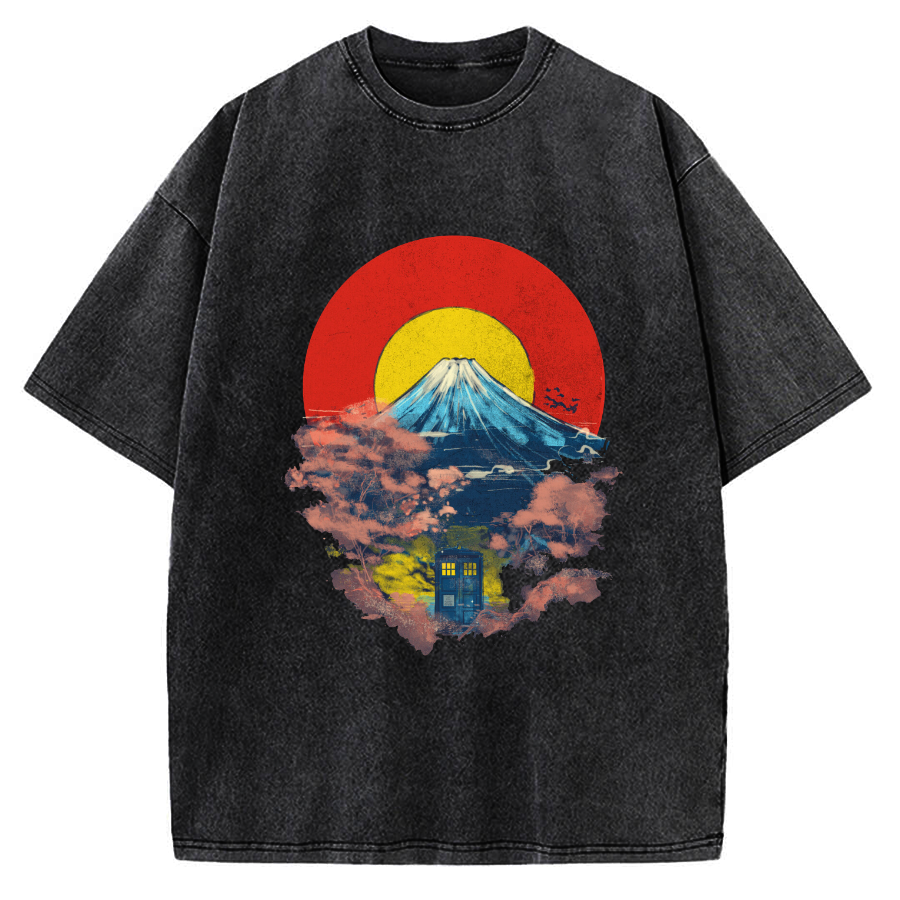 Mount Fuji Vintage Wash Japanese Front And Back Printing Washed T-shirt