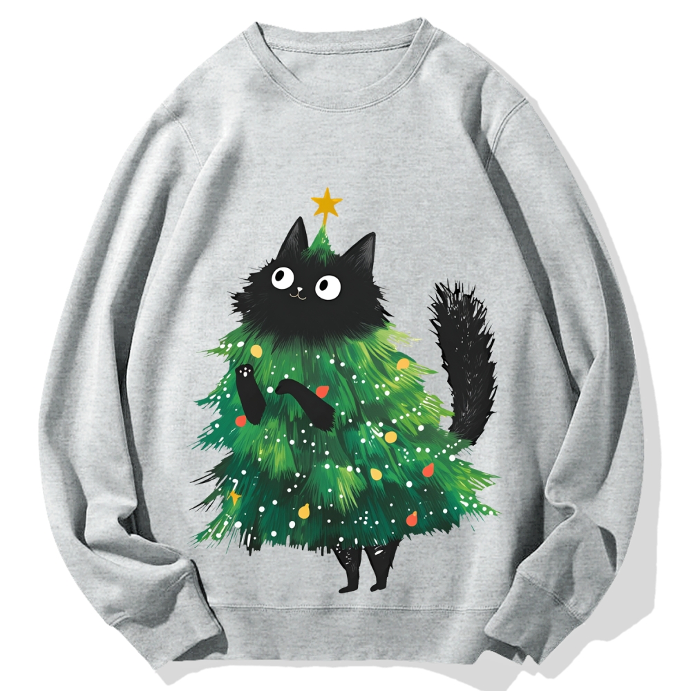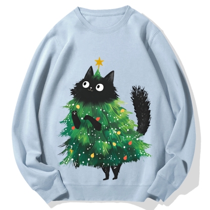 Christmas Tree Cat Japan Cotton Sweatshirt