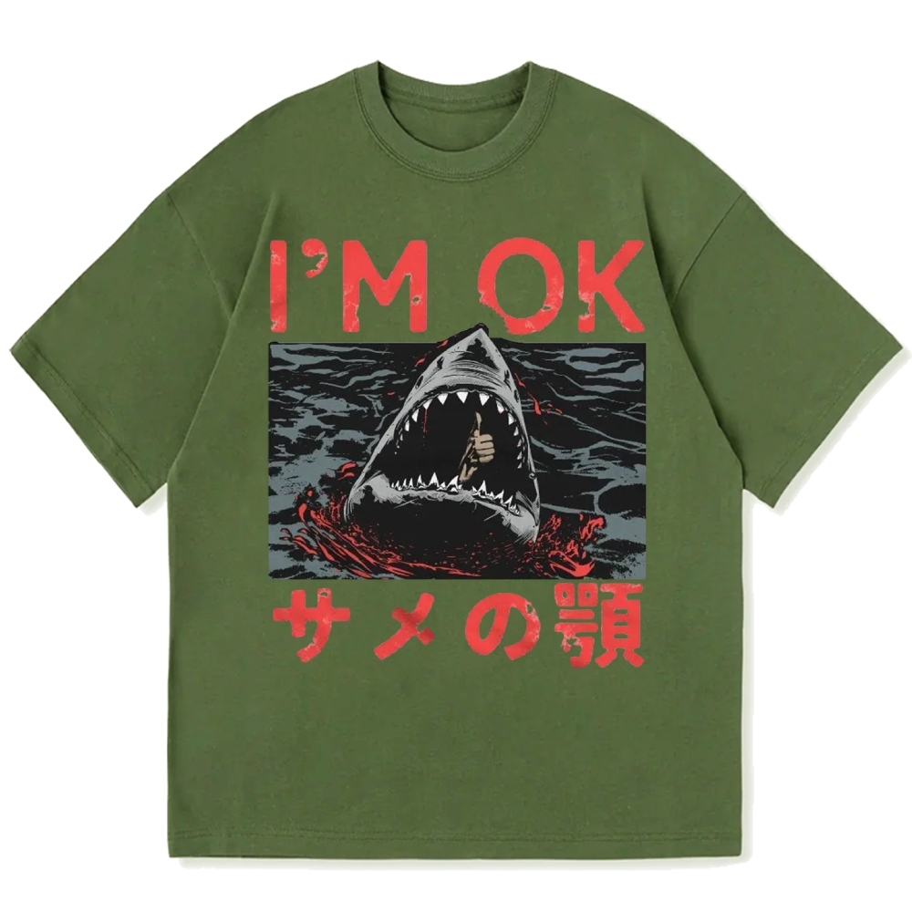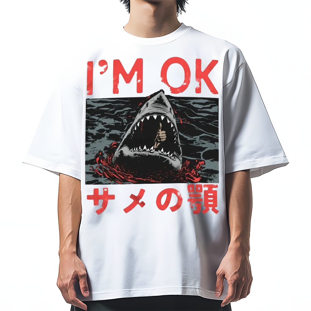 Im OK Huge Angry Shark Cotton casual T-shirt