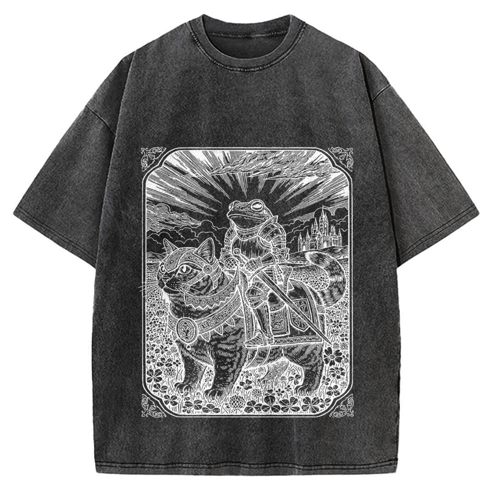 Knight Frog Riding Cat Vintage Washed T-shirt