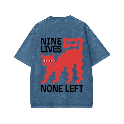 Nine lives None Left Cat Front And Back Printing Washed T-shirt