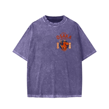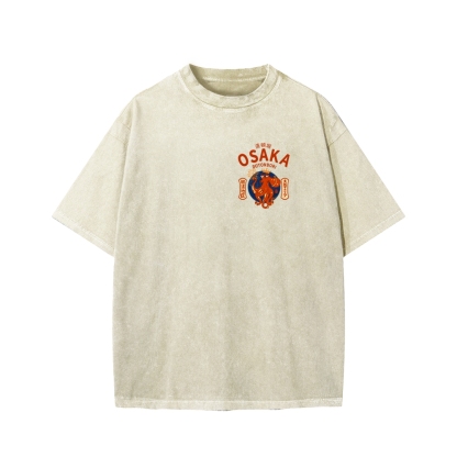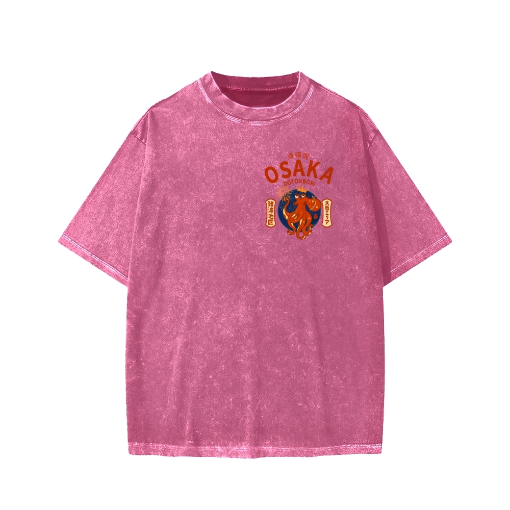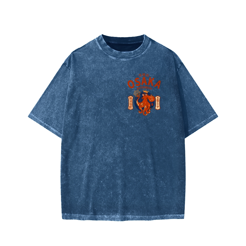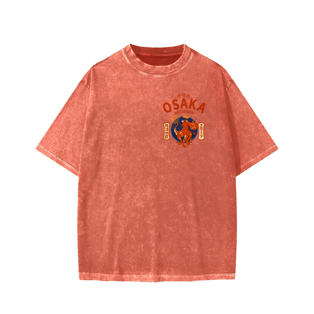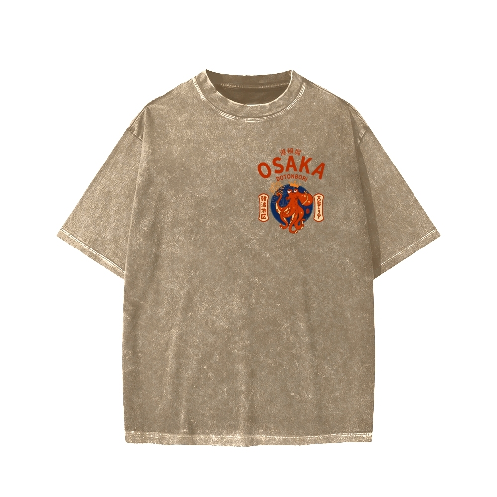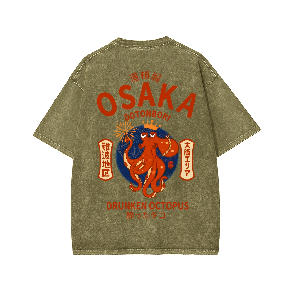 Osaka Dotonbori Drunken Octopus Vintage Wash Japanese Front And Back Printing Washed T-shirt