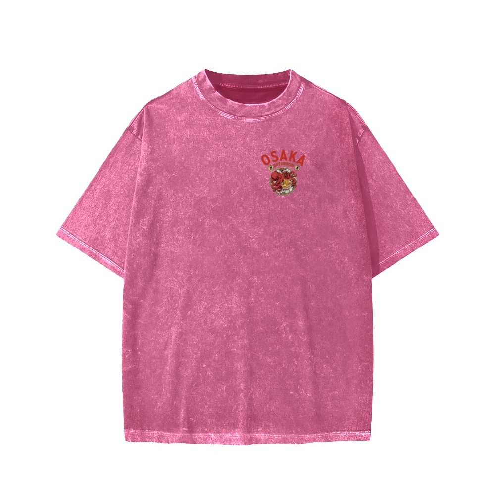 Osaka Drunken Octopus Eating Ramen Front And Back Printing Washed T-shirt