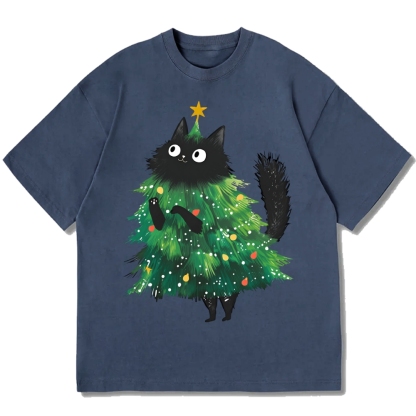 Christmas Tree Cat Japan Cotton casual T-shirt