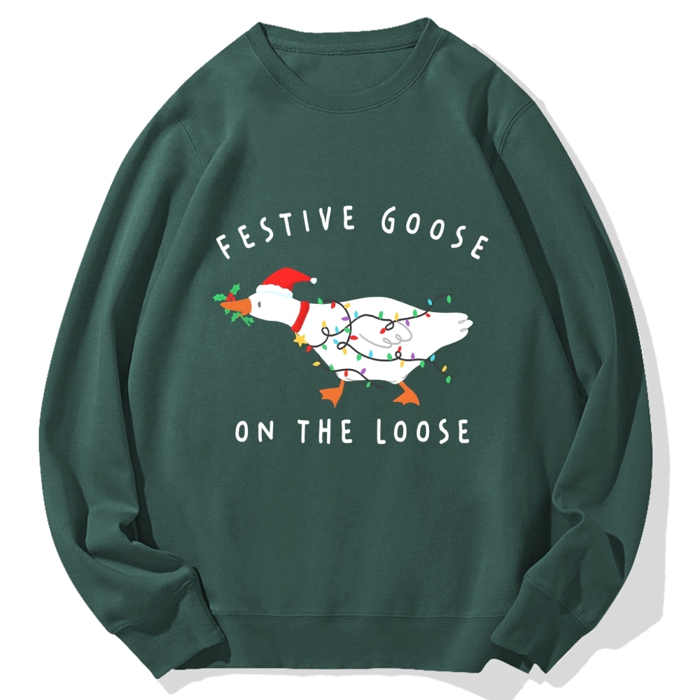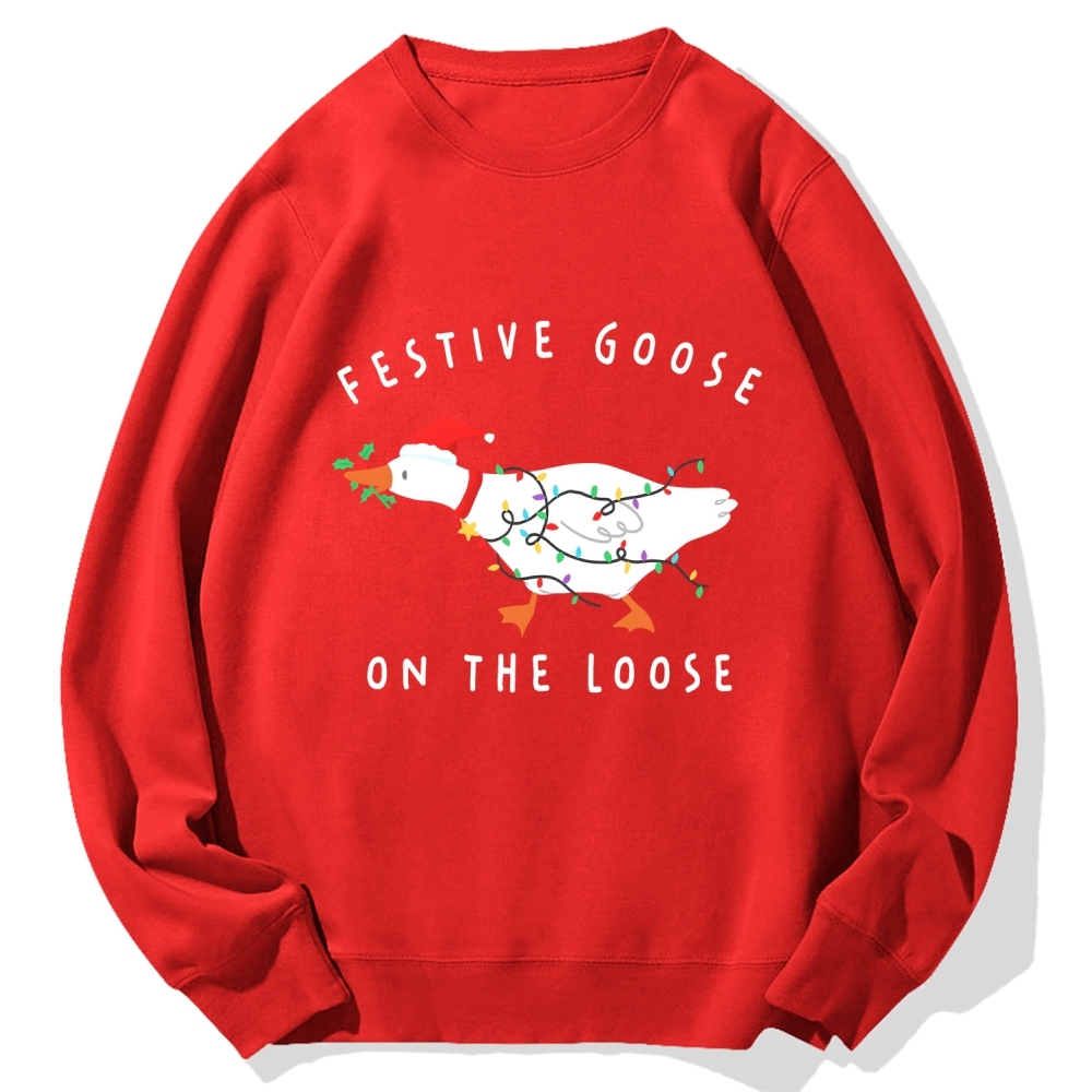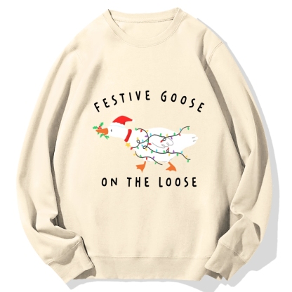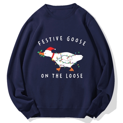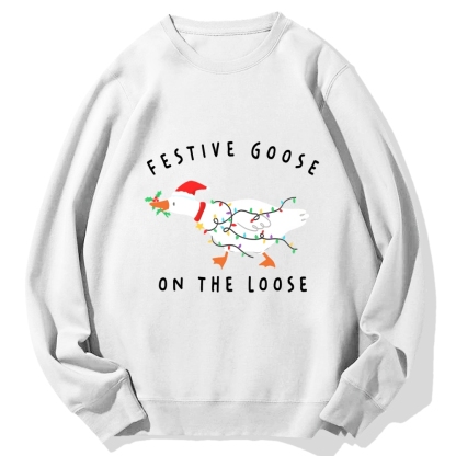 Festive Goose on the Loose Merry Christmas Cotton Sweatshirt