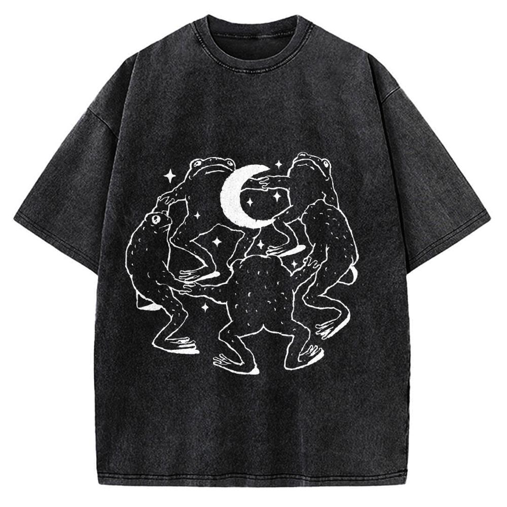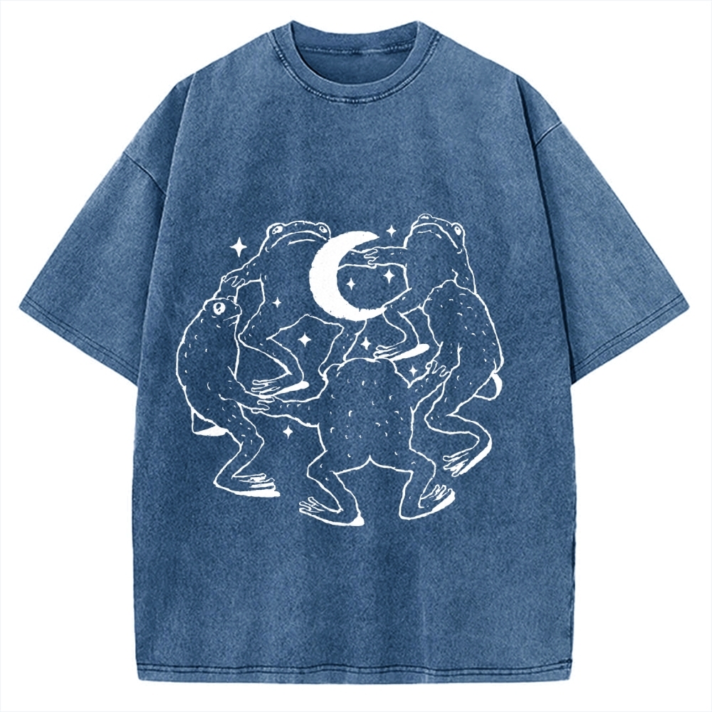 Frogs dancing around a crescent moon Vintage Washed T-shirt
