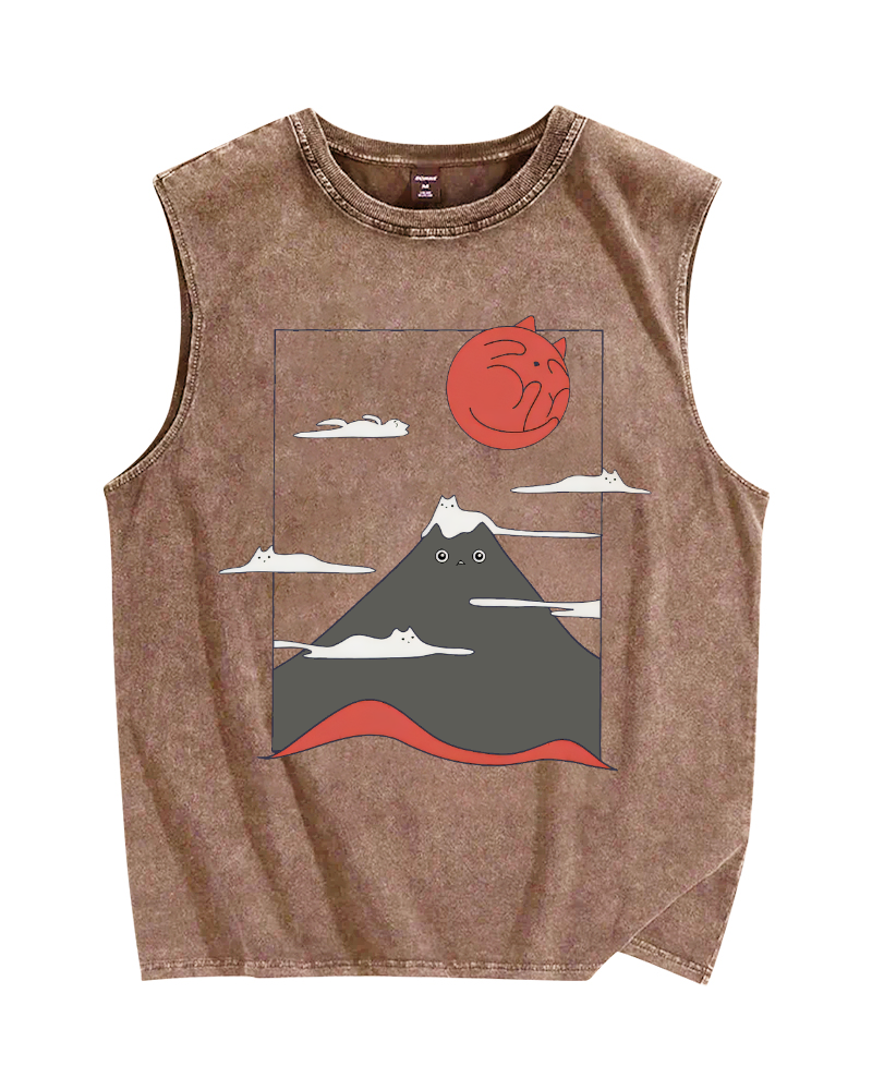 Mount Fujicat Vintage Distressed Washed Tank Top
