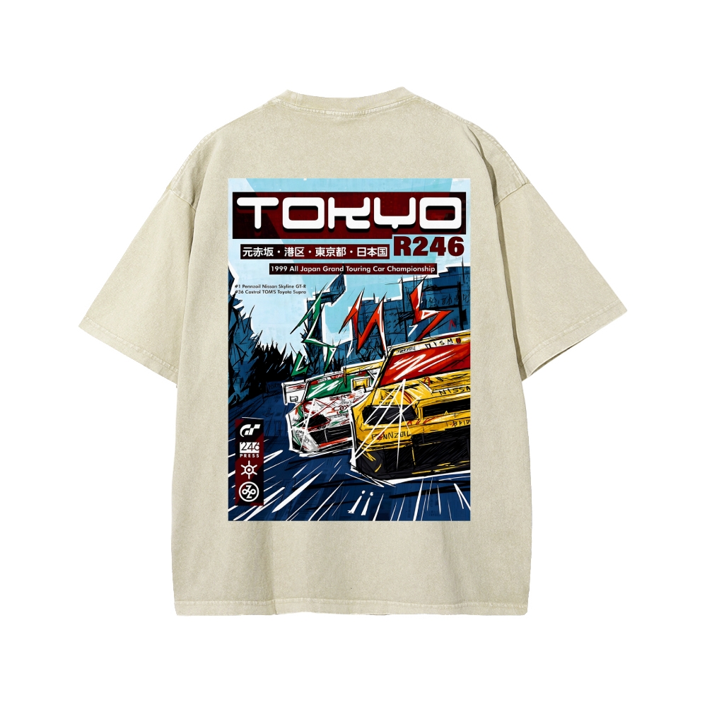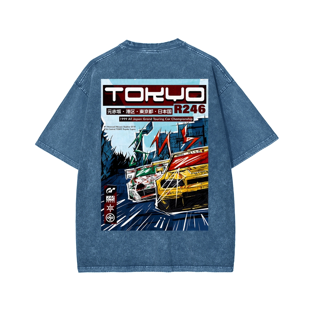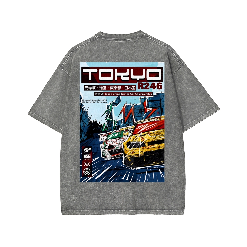 Tokyo r246 Gran Turismo 4 a3 Front And Back Printing Washed T-shirt