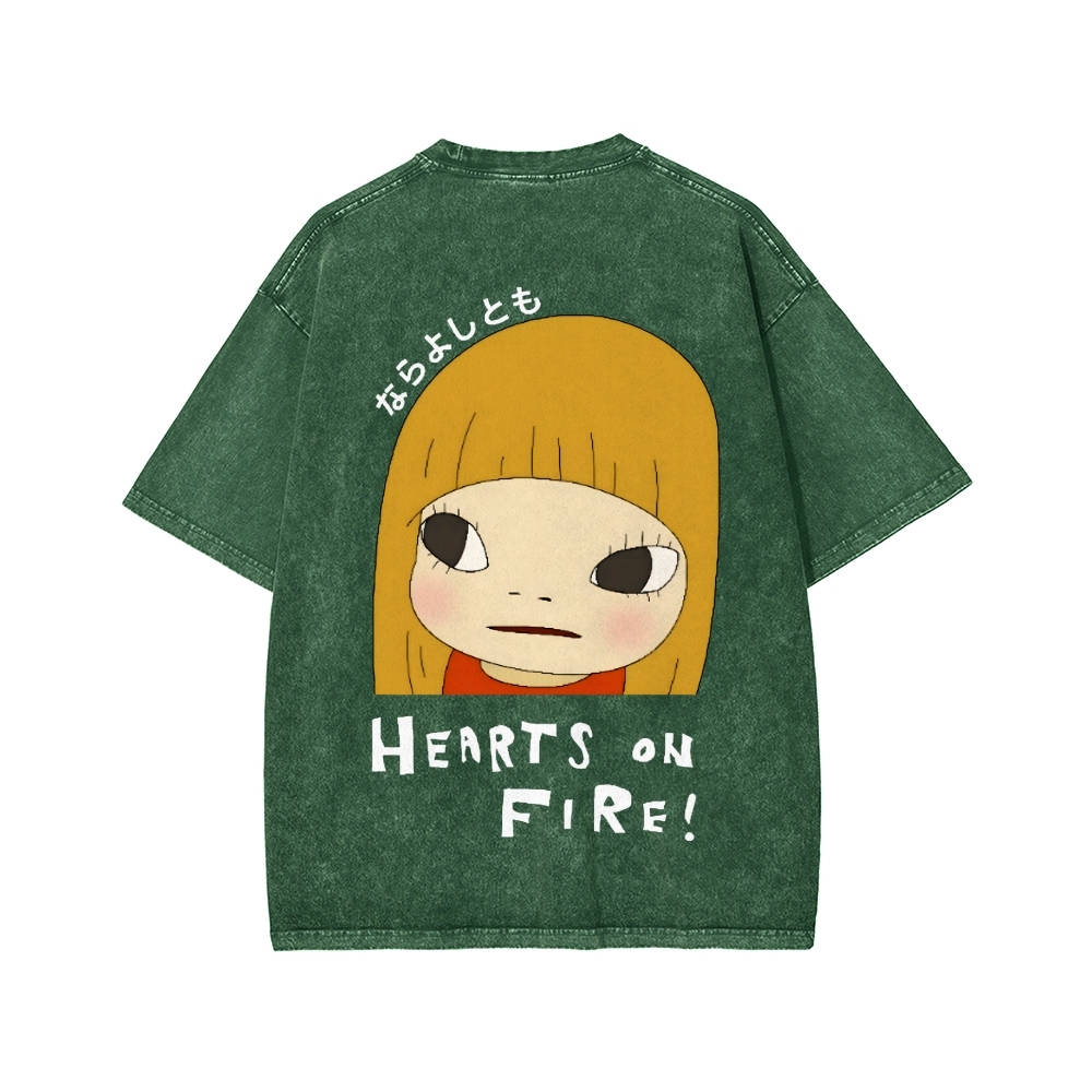 Yoshitomo Nara Vintage Wash Japanese Design Front And Back Printing Washed T-shirt