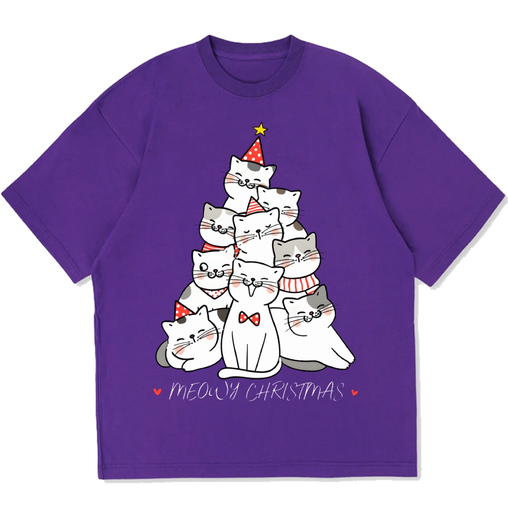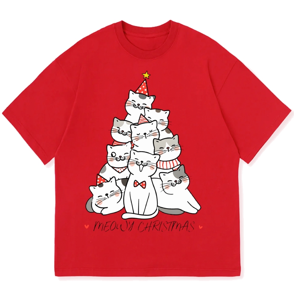 Kawaii Christmas Tree Cute Cat Cotton casual T-shirt