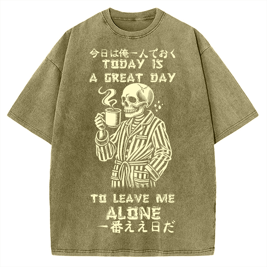 Today is a Great Day to leave me alone Skeleton Vintage Washed T-shirt