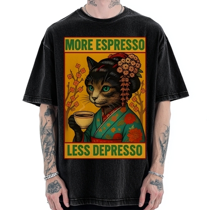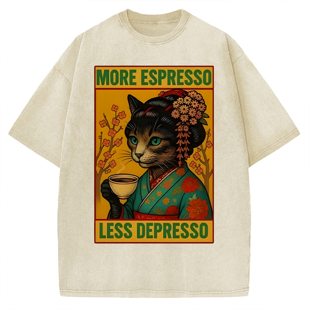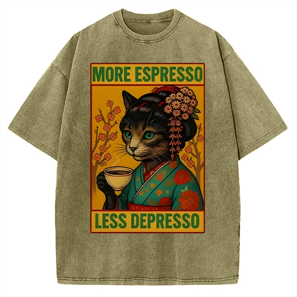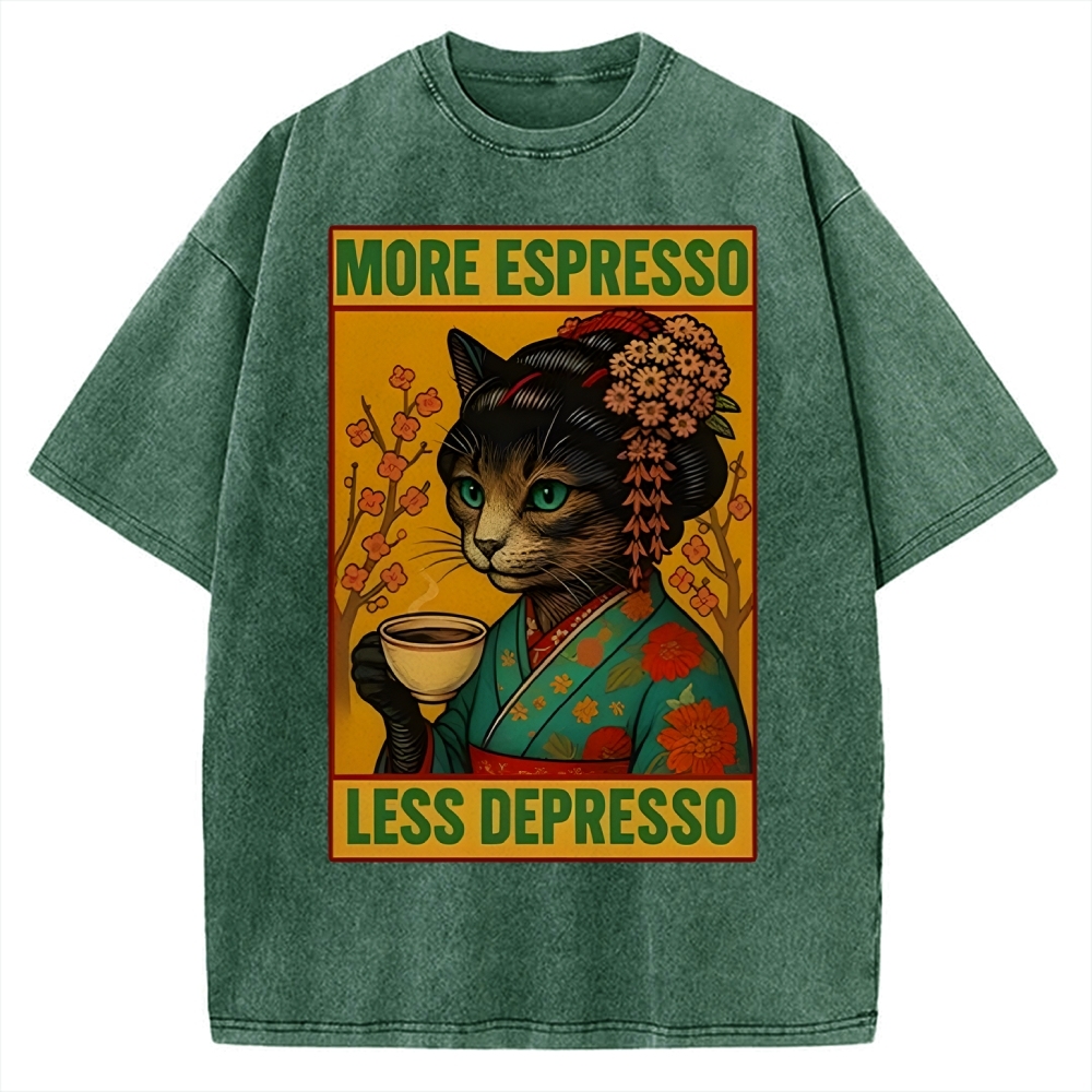 Geisha Cat Drinking Coffee Vintage Washed T-shirt