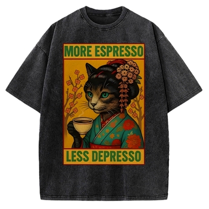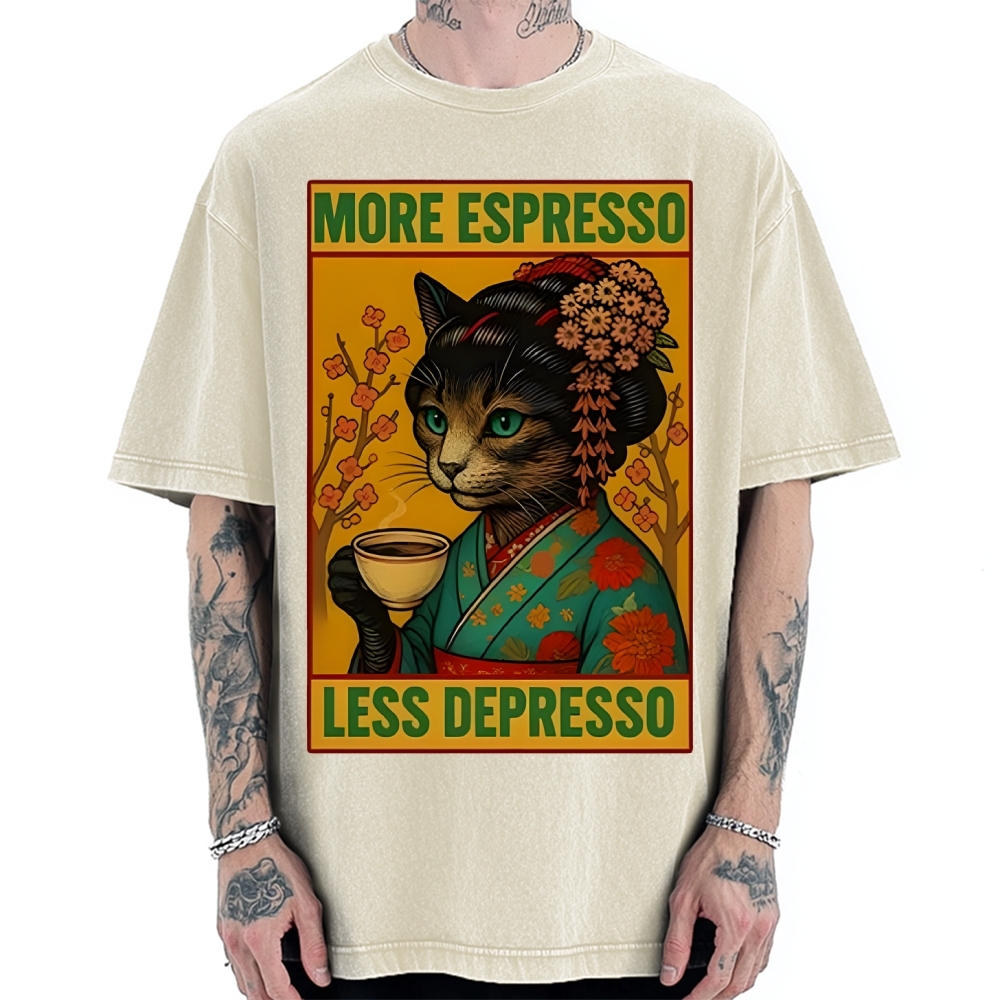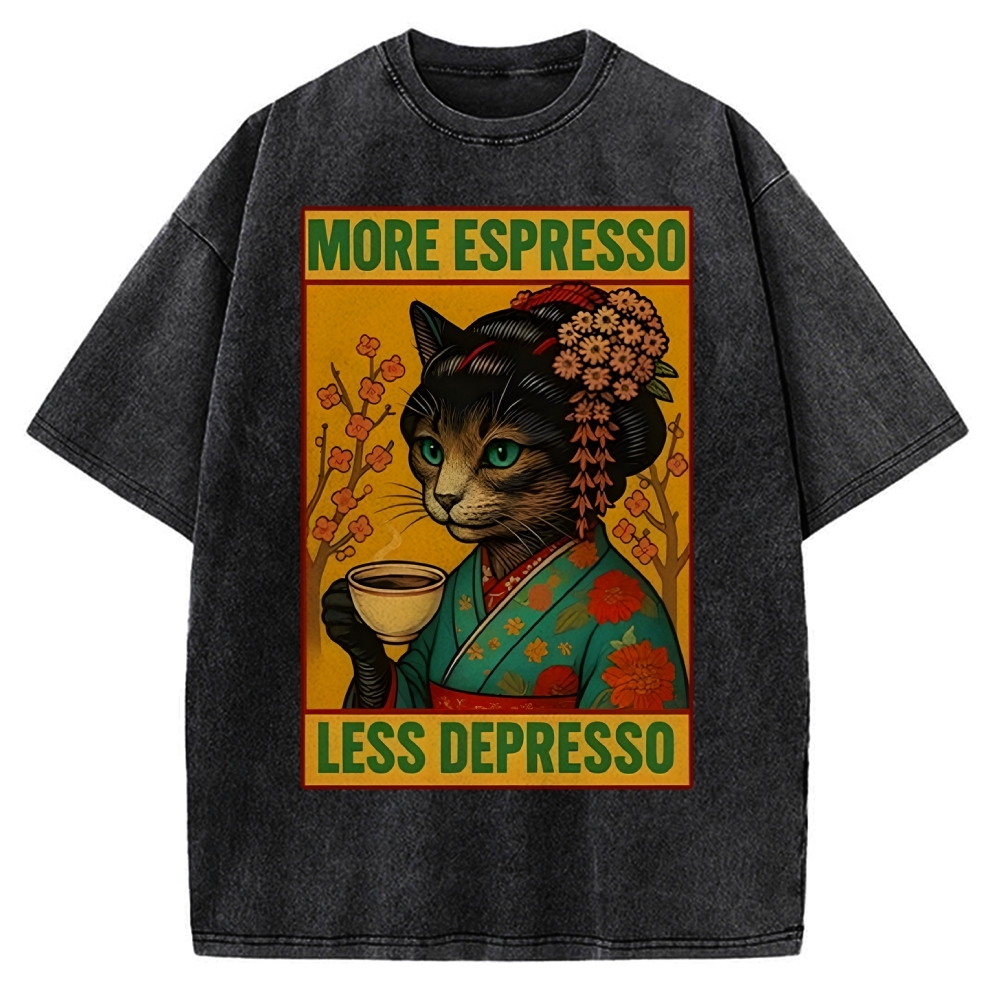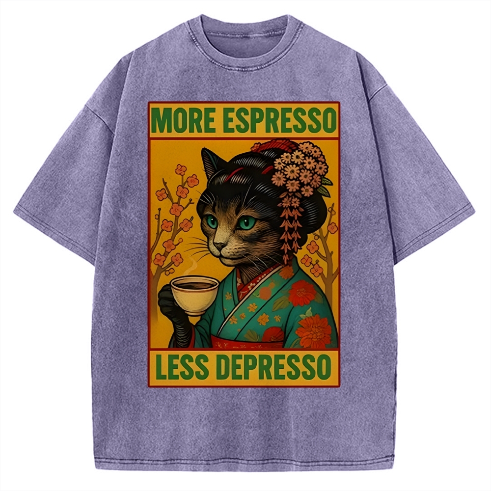 Geisha Cat Drinking Coffee Vintage Washed T-shirt