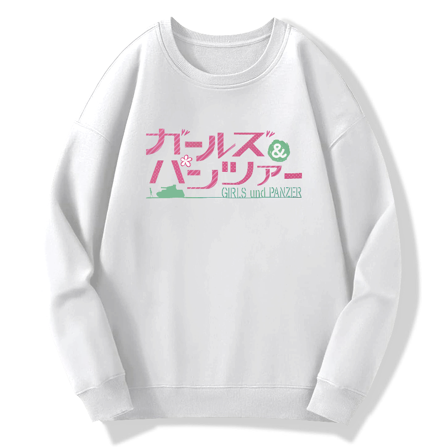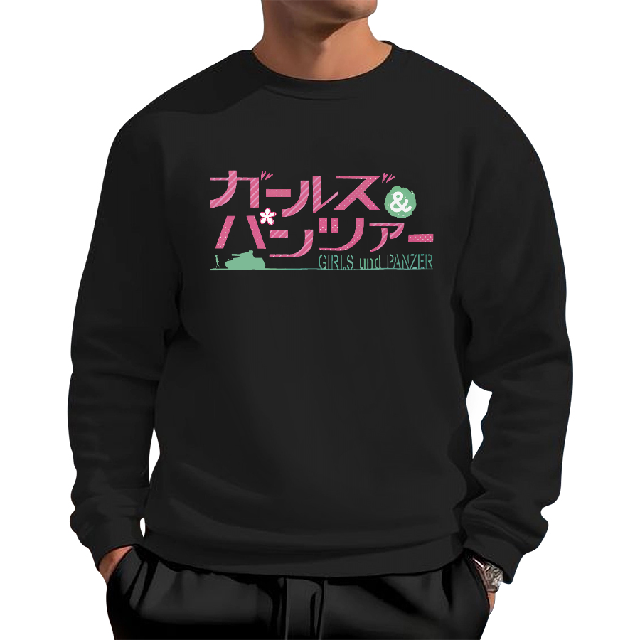 Girl and Tank Japanese Hanzi Cotton Pullover Sweatshirt