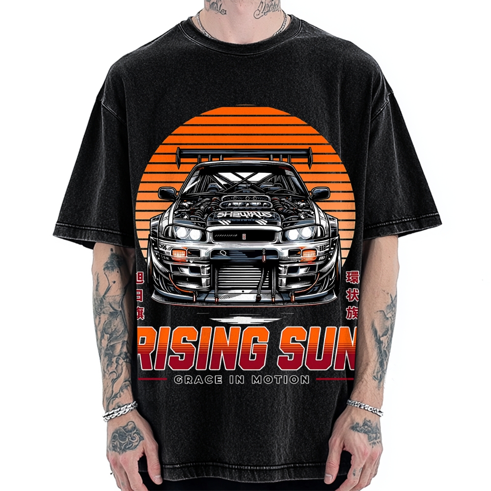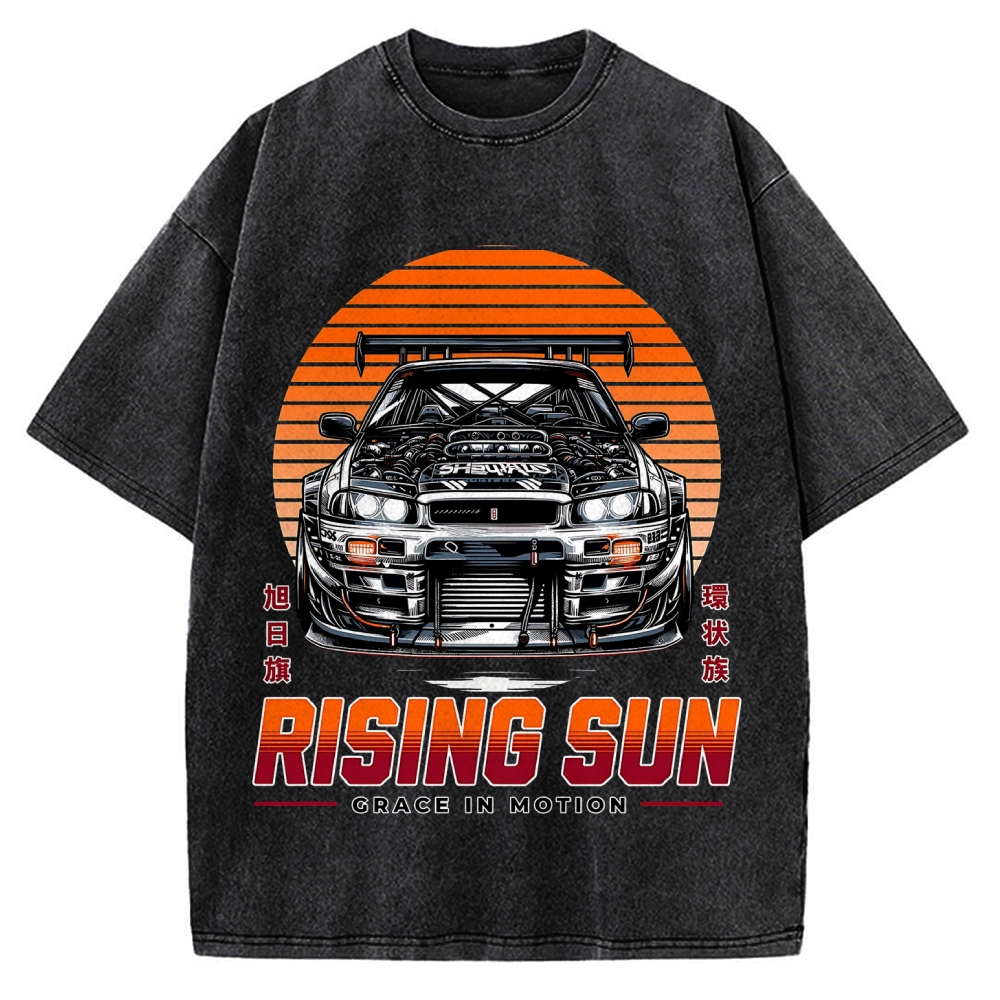 Rising Sun Racing Car Front And Back Printing Washed T-shirt