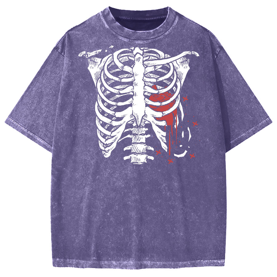 Broken Heart Skeleton Vintage Washed T-shirt