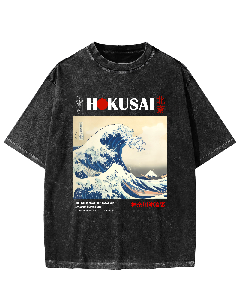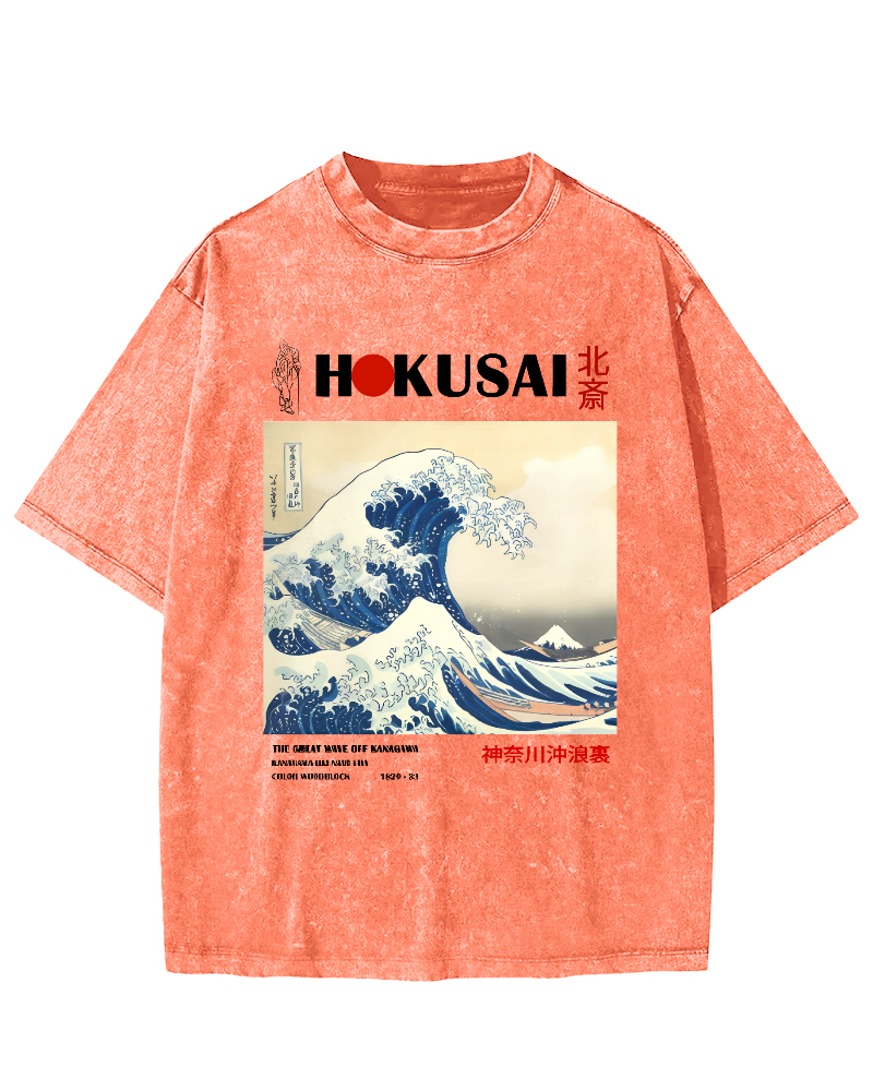 Katsushika Hokusai's Wave Art Vintage Washed T-shirt