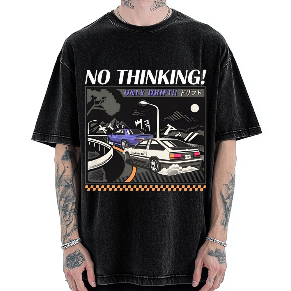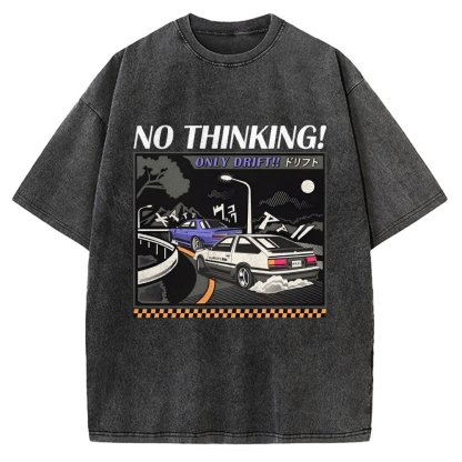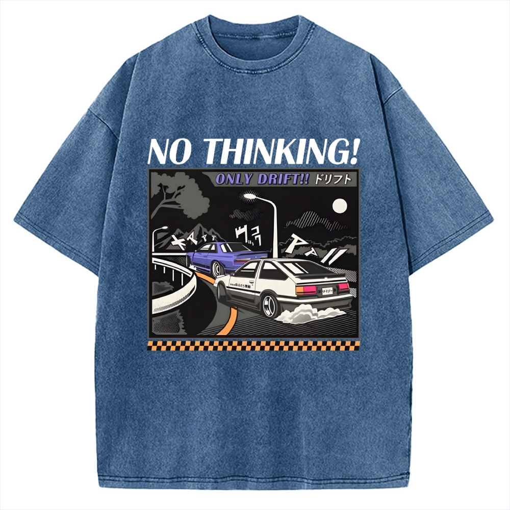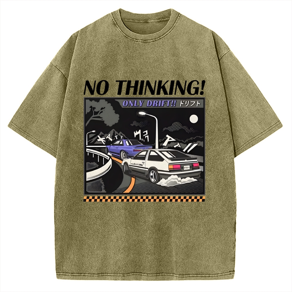NO THINKING!! Japanese Retro Drift Car Vintage Washed T-shirt