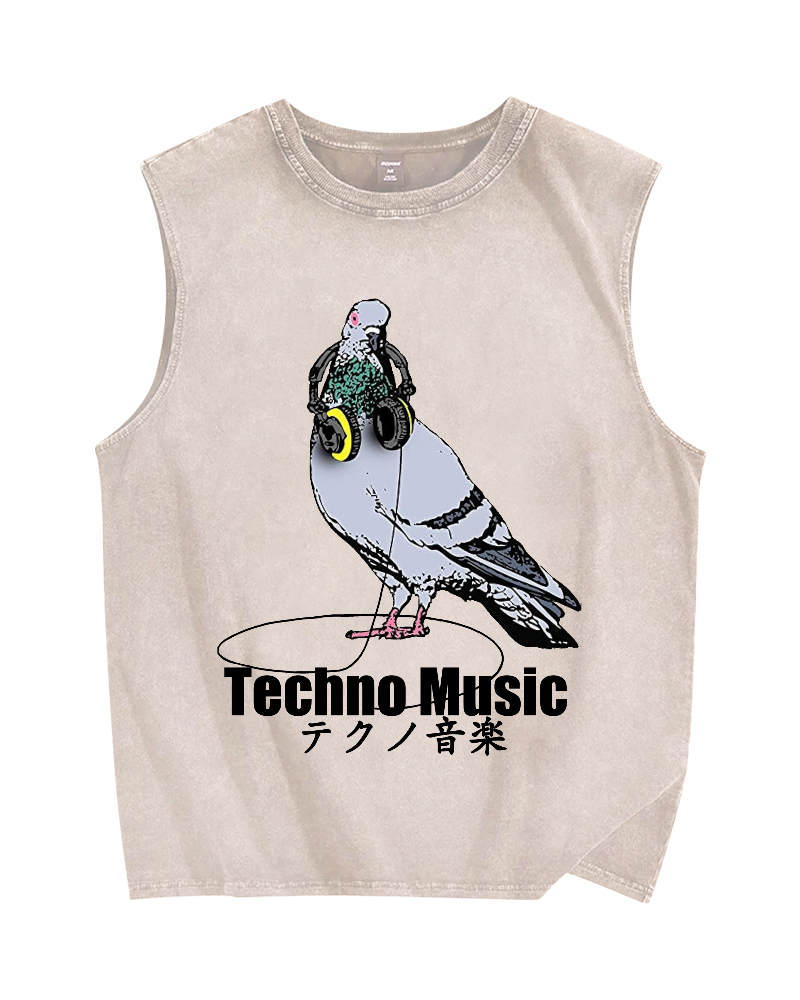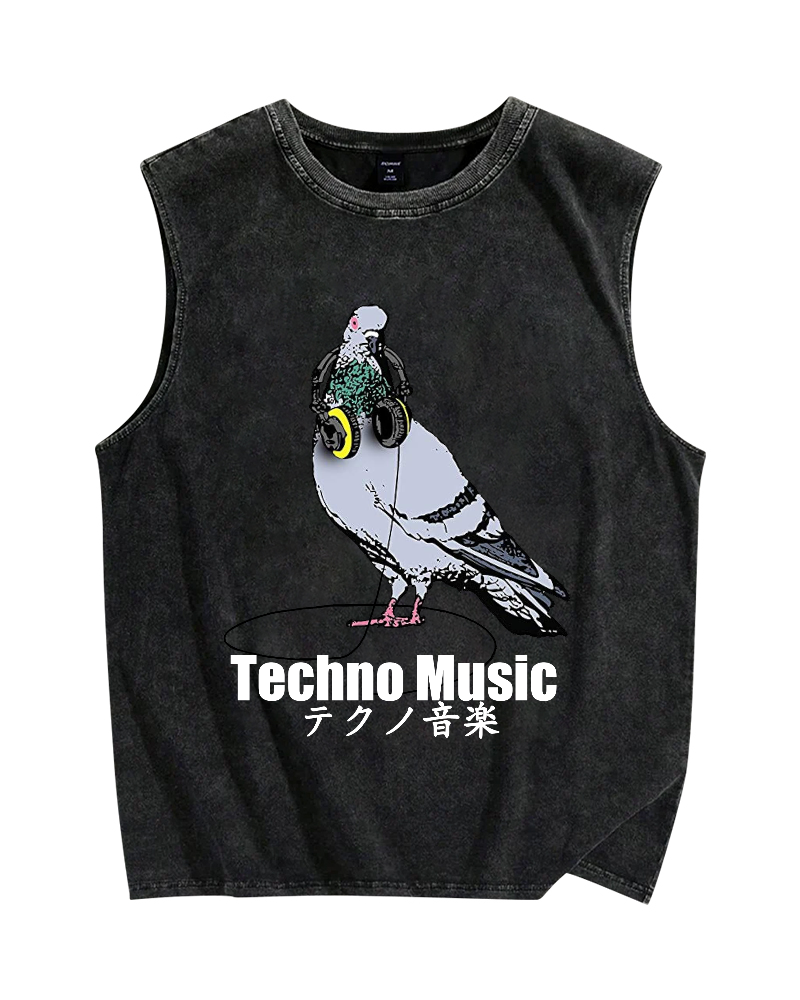 Techno Music Vintage Distressed Washed Tank Top
