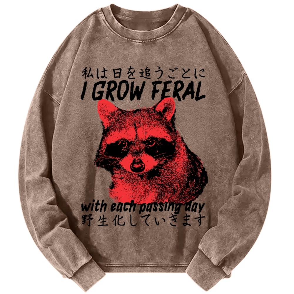 I Grow Feral Vintage Japanese Raccoon Vintage Washed Sweatshirts