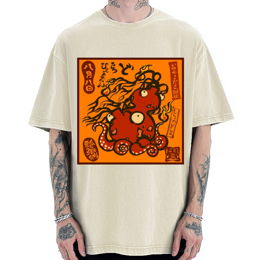 Octopus gourd Monster Funny painting Vintage Washed T-shirt