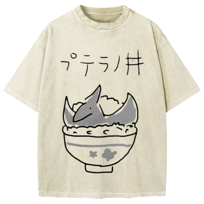 Ptera otton Rice bowl Cute Dinosaur Japanese Vintage Washed T-shirt