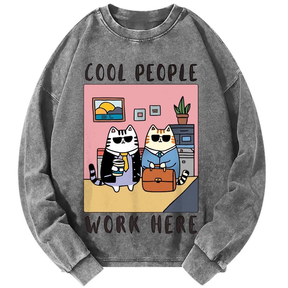 Cool People Work Here Cat Vintage Washed Sweatshirts