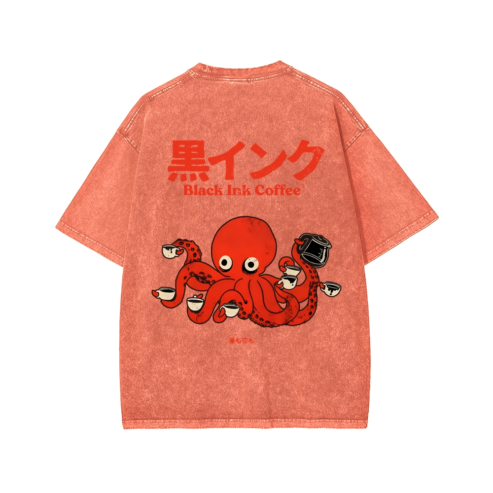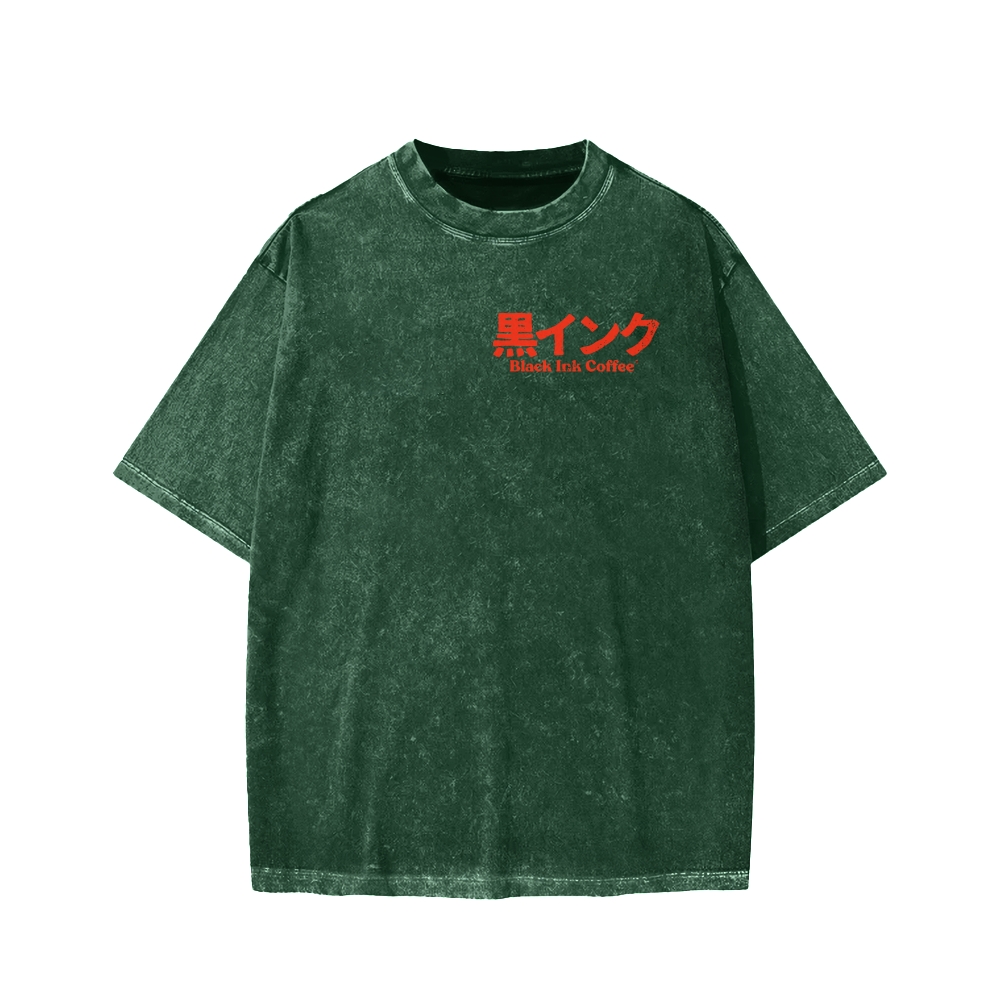 Black Ink Coffee Front And Back Printing Washed T-shirt