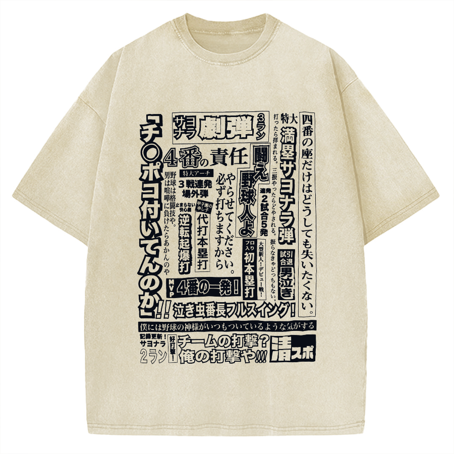 Japanese Baseball Retro Poster Vintage Washed T-shirt
