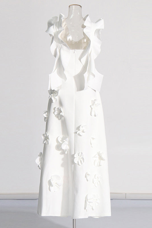 Ruffle hem solid color long dress