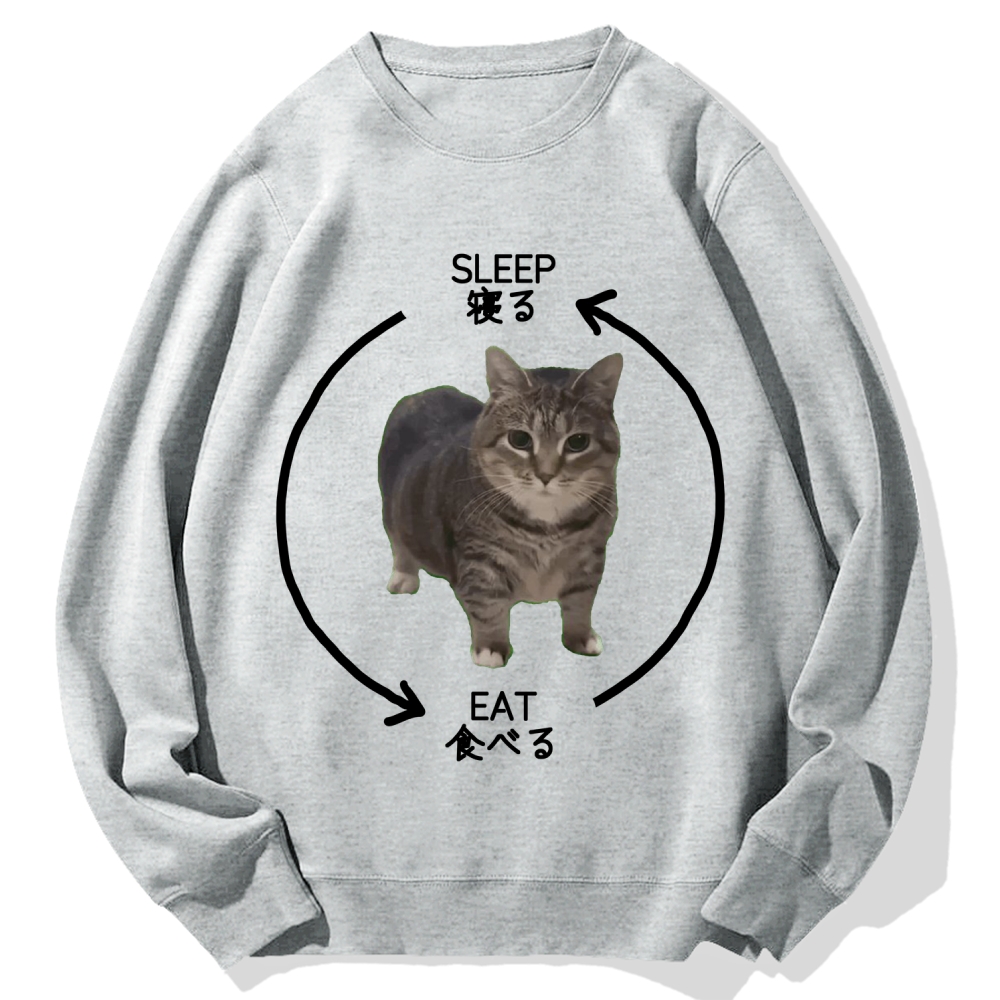Sleep & Eat Spinning Cat OIIA Meme Cotton Sweatshirt