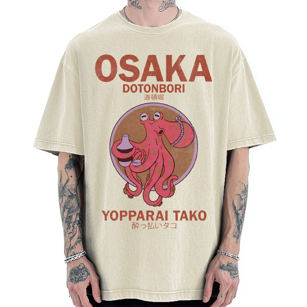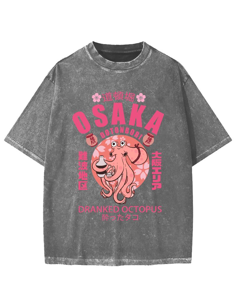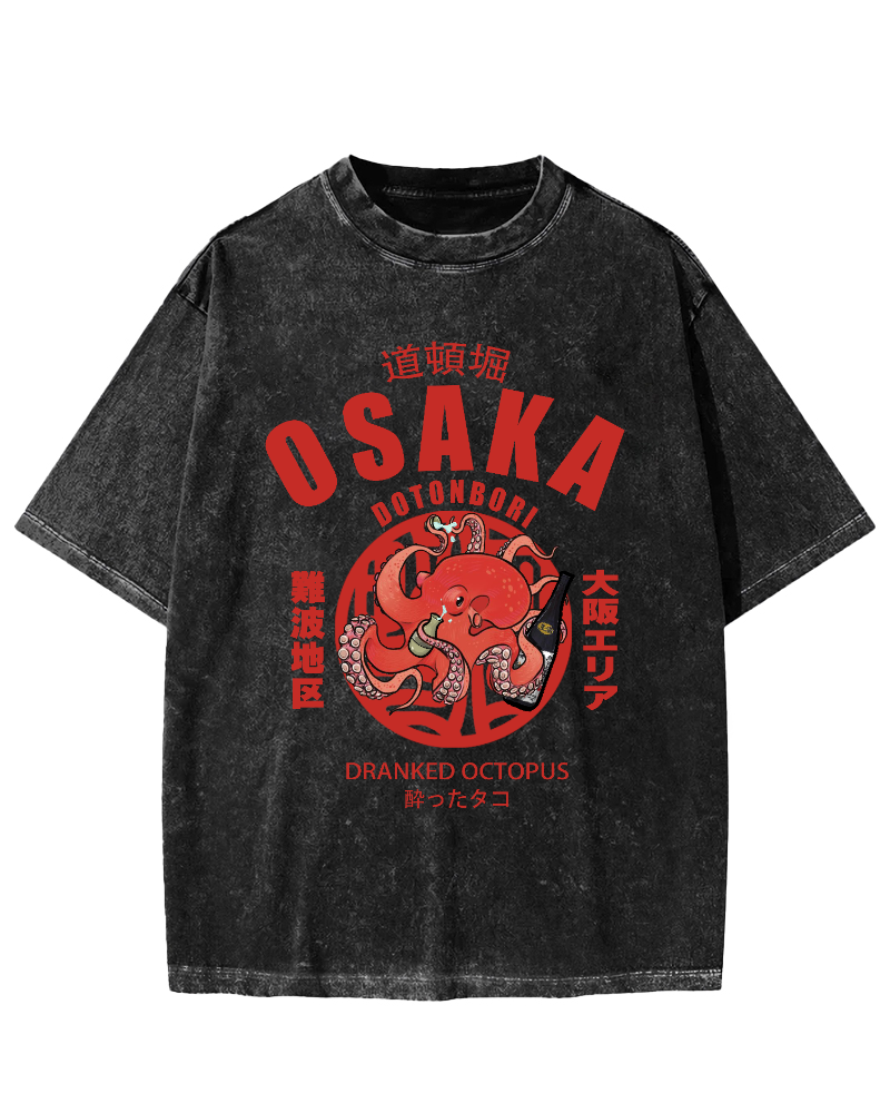 Osaka Dotonbori Drunken Octopus Vintage Wash Japanese Vintage Washed T-shirt