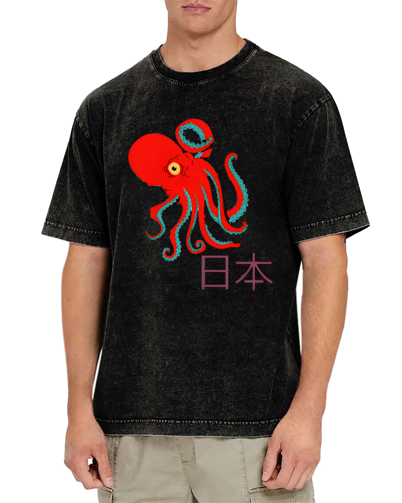 Japanese Personalized Octopus Pattern Vintage Distressed T-shirt