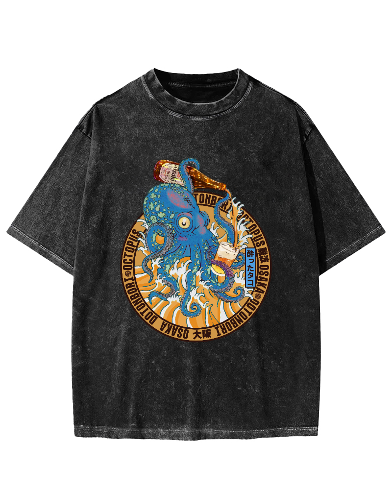 Osaka Dotonbori Drinking Octopus Vintage Washed T-shirt