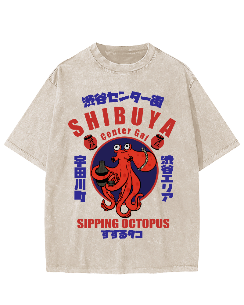 Shibuya Center Street Octopus Vintage Washed T-shirt