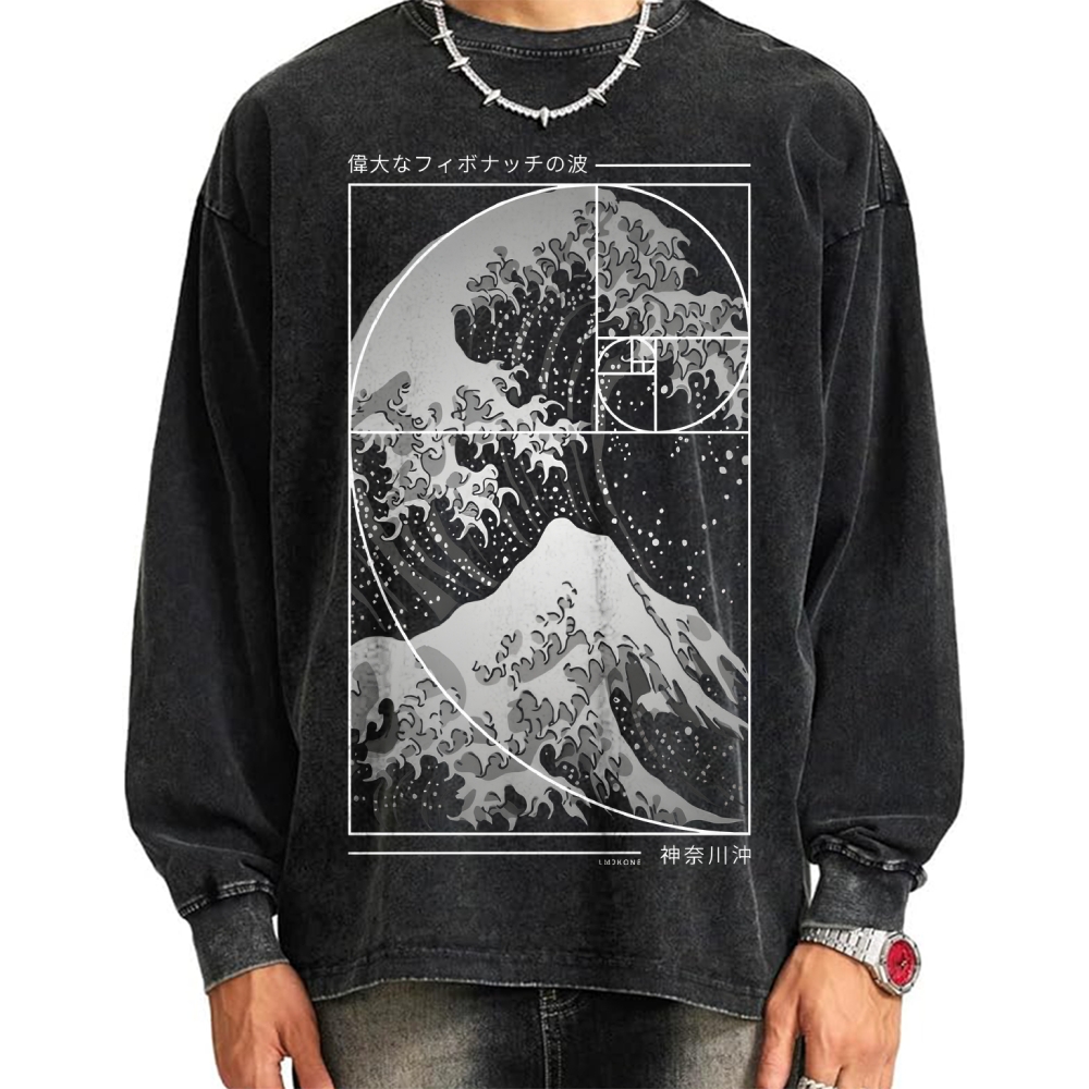 Japanese Kanagawa Wave Vintage Washed Sweatshirts