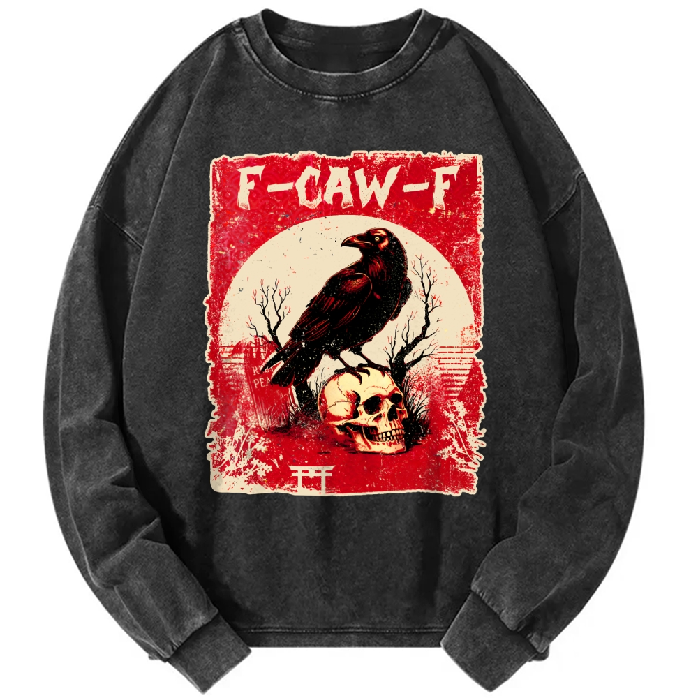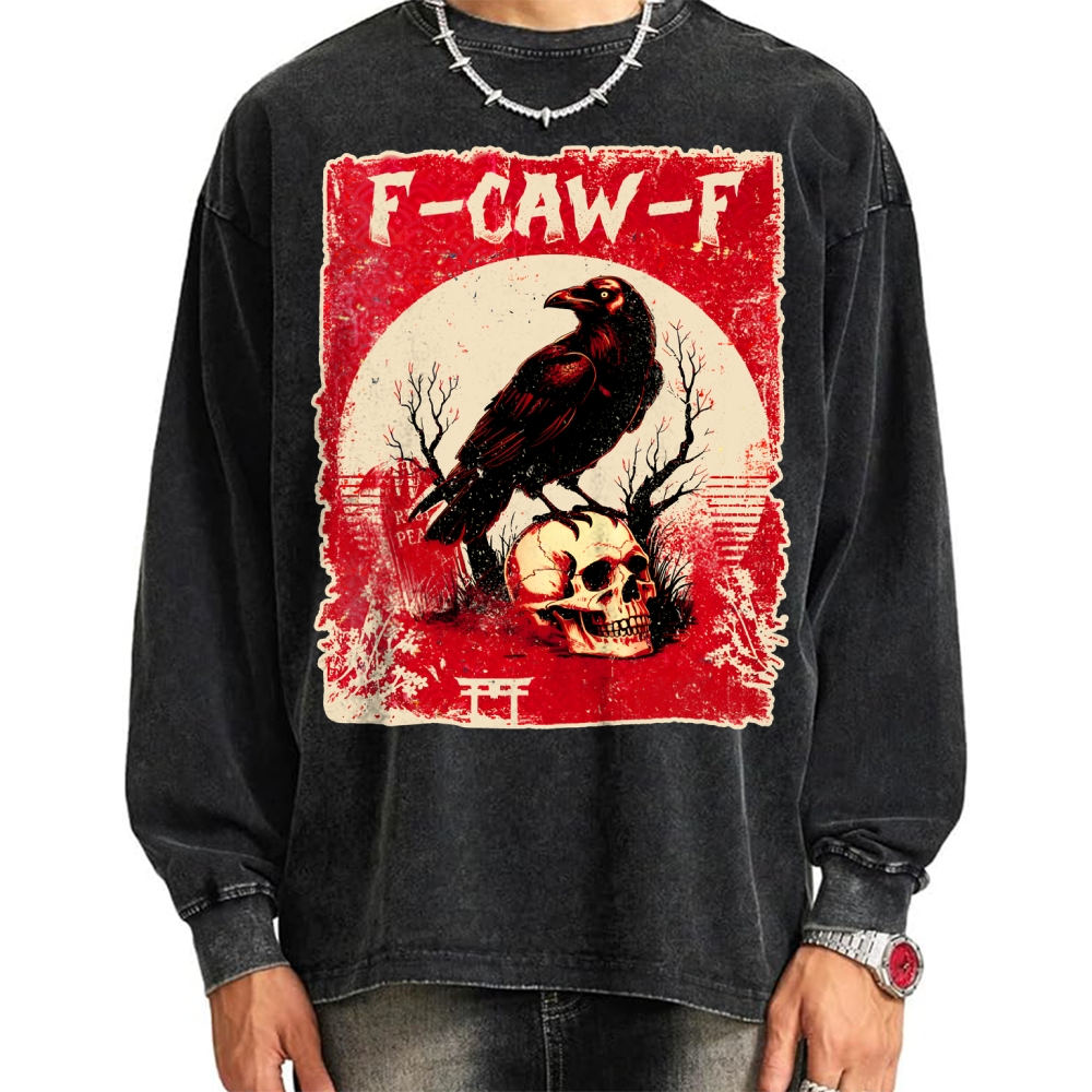 F-CAW-F Black Crow Japanese Style Vintage Washed Sweatshirts
