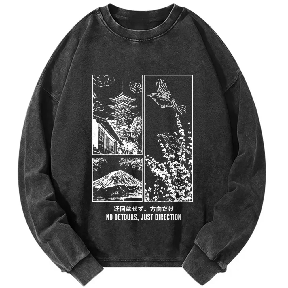 NO DETOURS, JUST DIRECTION Japanese View Vintage Washed Sweatshirts