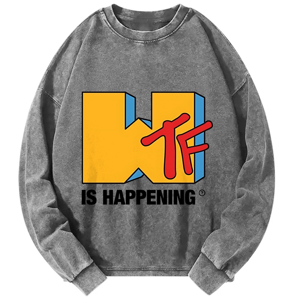 WTF Is Happening Funny Logo Vintage Washed Sweatshirts