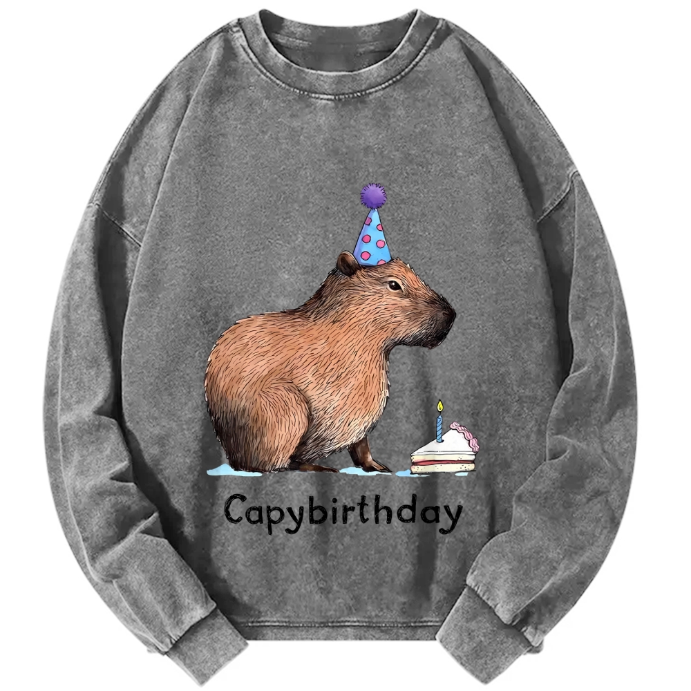 Capybirthday Funny Capybara Vintage Washed Sweatshirts