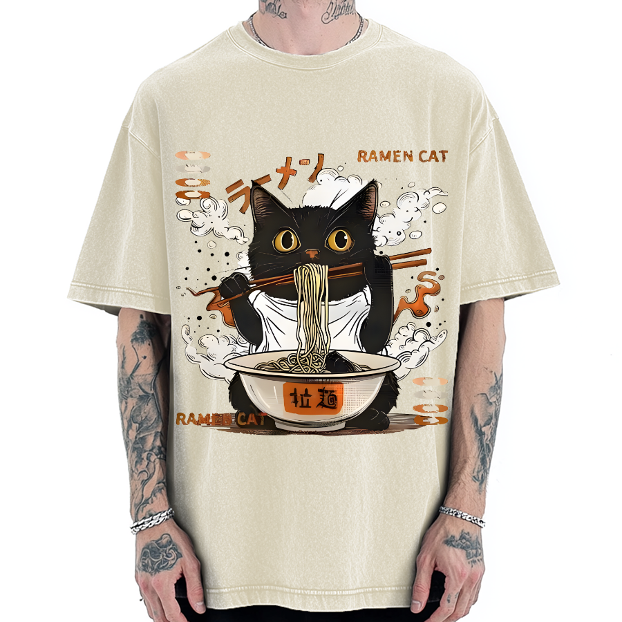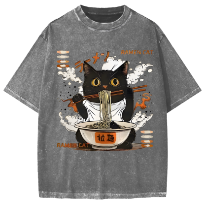 Cat Chef Eats Ramen Vintage Washed T-shirt
