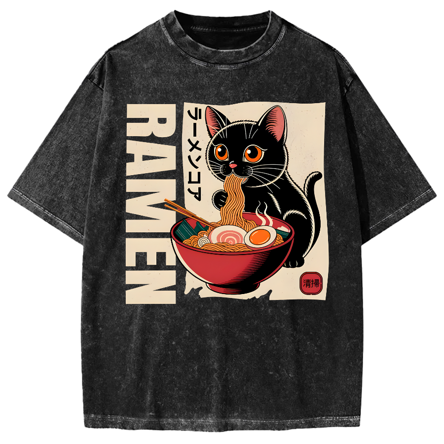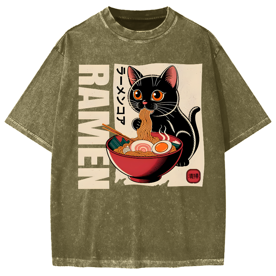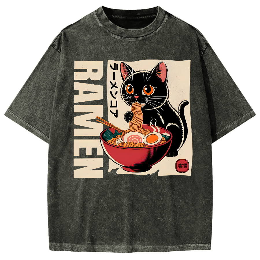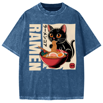 Cute Ramen Cat Japanese Food Vintage Washed T-shirt